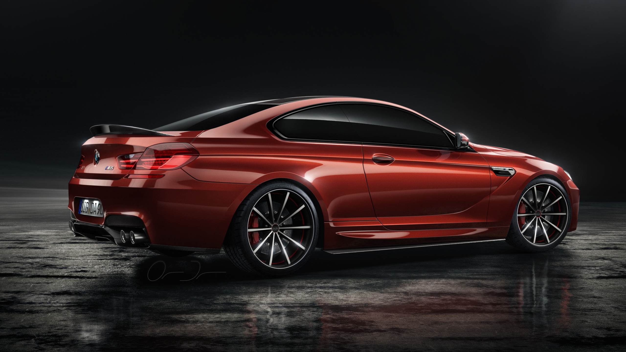 Description: A red car is parked in a dark room with a spotlight on it's side and the rear end of the car.