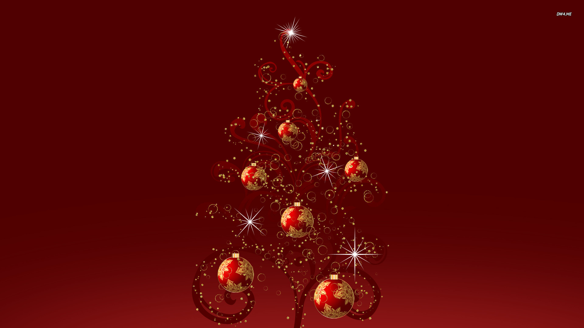 Description: A red christmas tree with gold ornaments on it's branches and a red background with a red background.