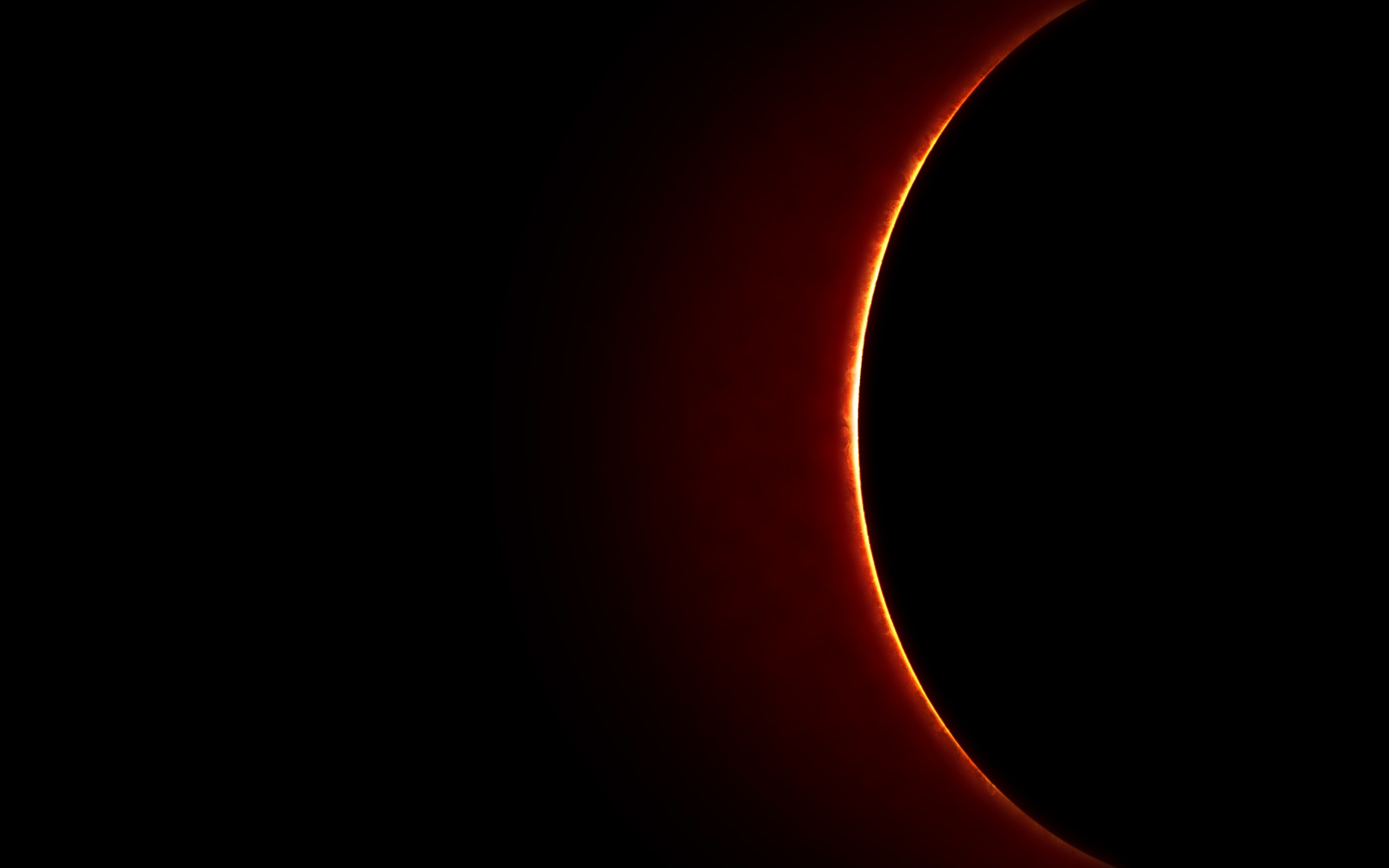 Description: A red eclipse eclipse in the sky with a black background and a red light at the end of the eclipse.