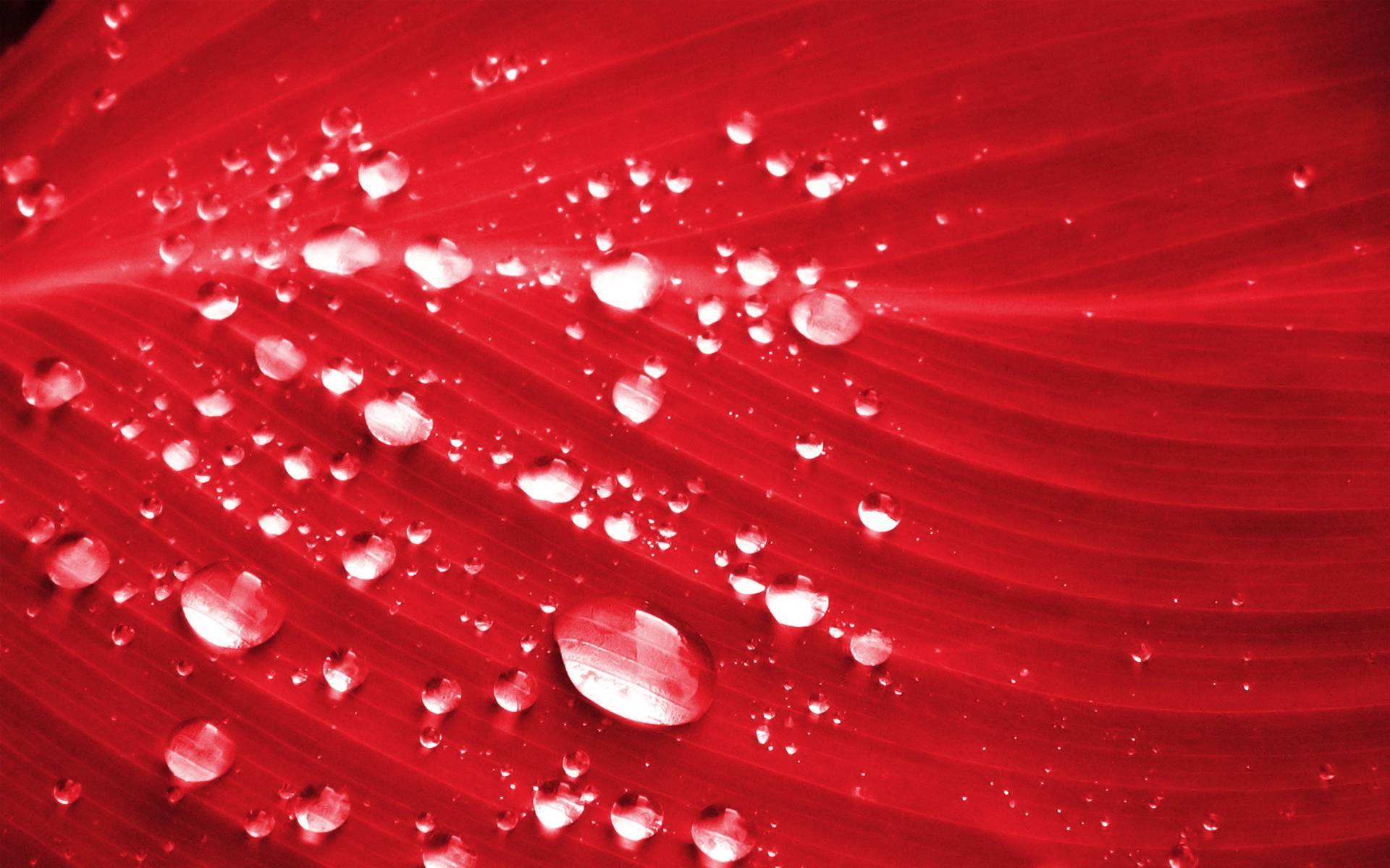 Description: A close up of a red flower with water droplets on it's petals and a black background with a white border.
