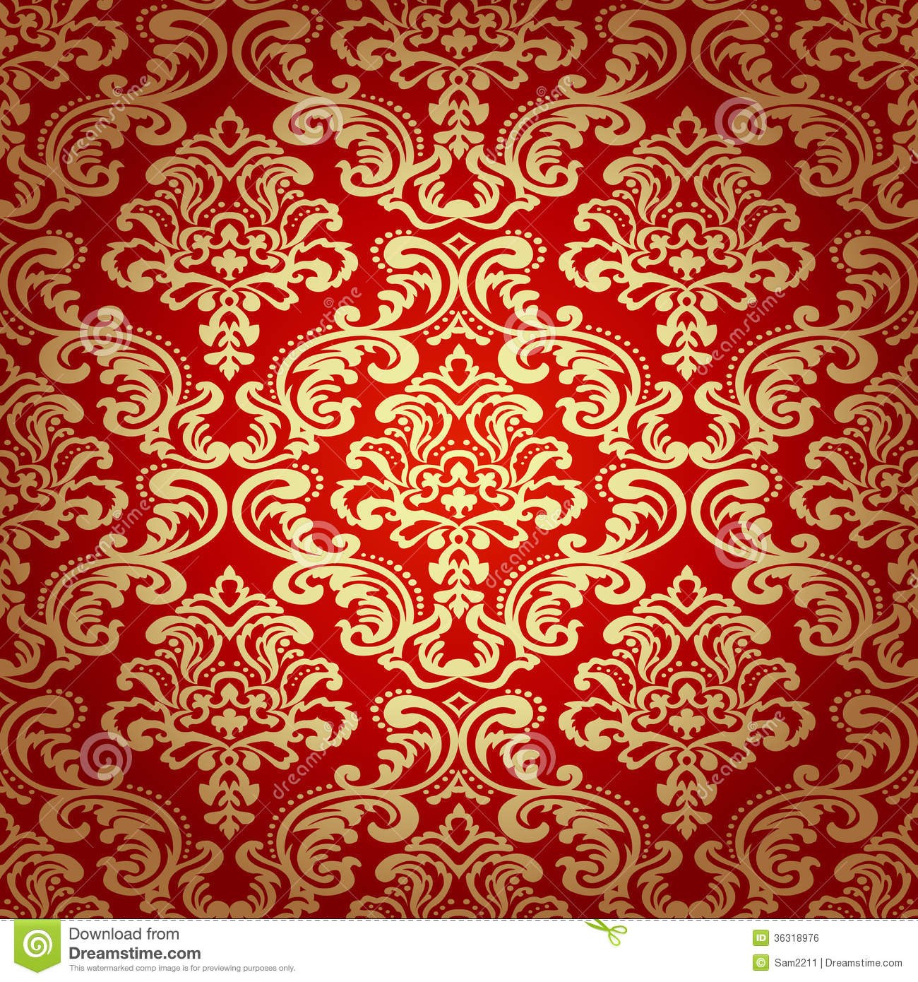 Description: A red and gold background with a floral design on it's side.