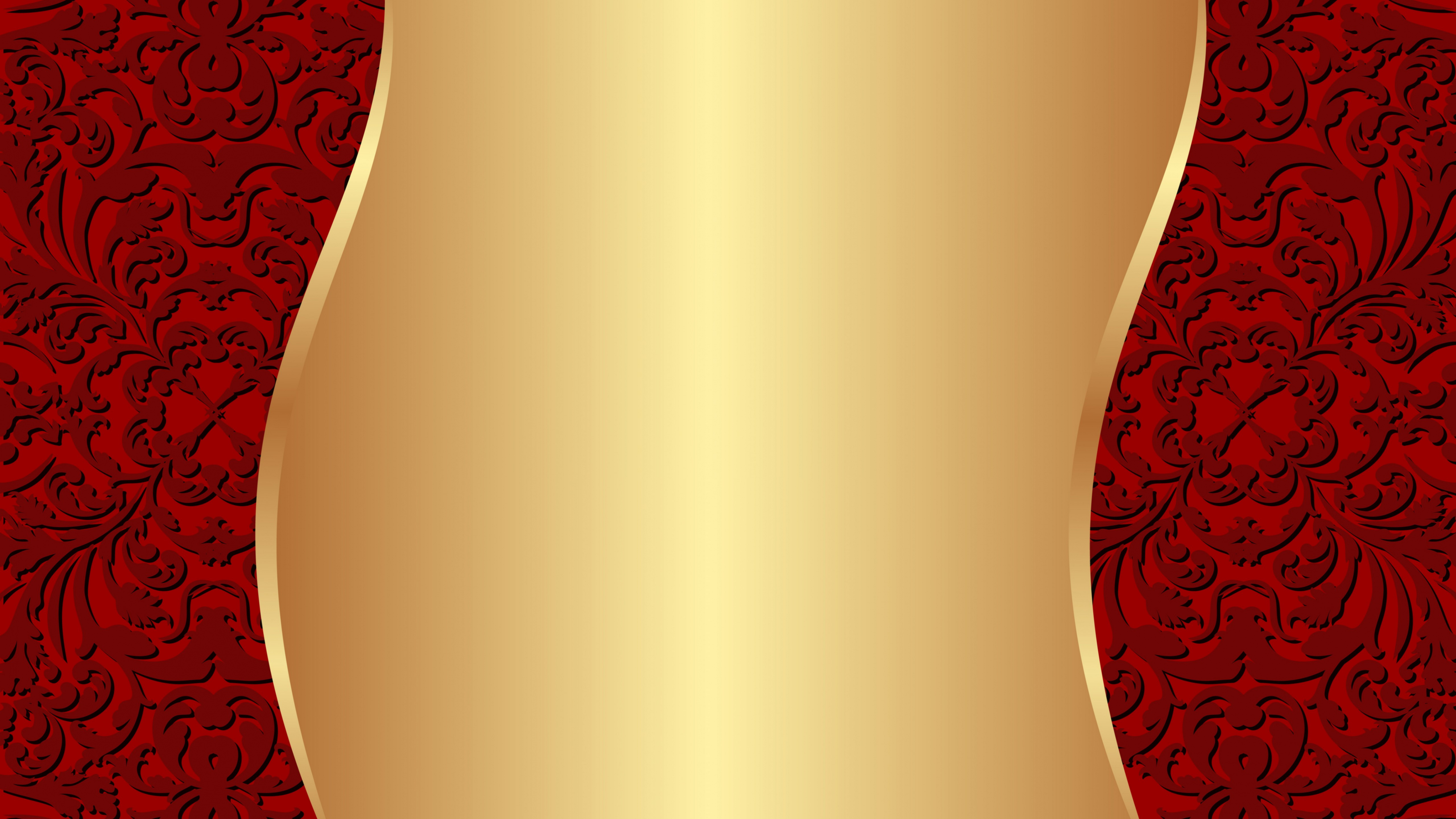 Description: A red and gold background with a floral design on it's side and a gold border on the bottom.