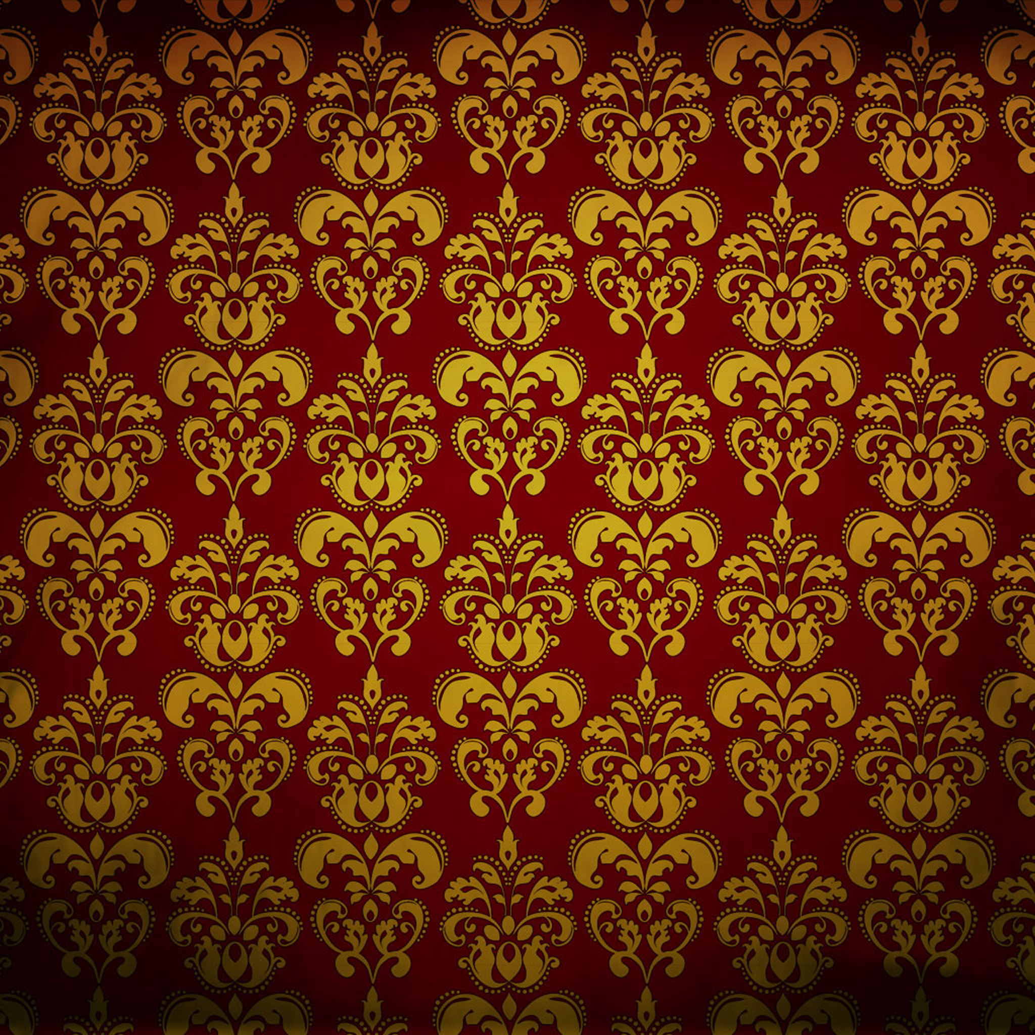 Description: A red and gold wallpaper with a pattern of flowers and leaves on it's side.