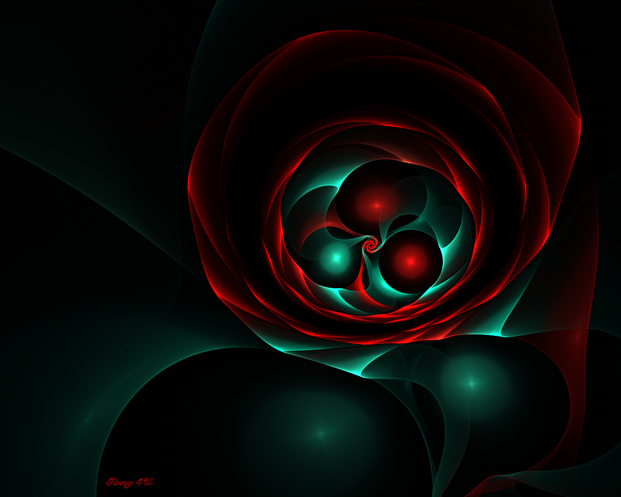 Description: A computer generated image of a red and green flower with a black background and a red and green center.