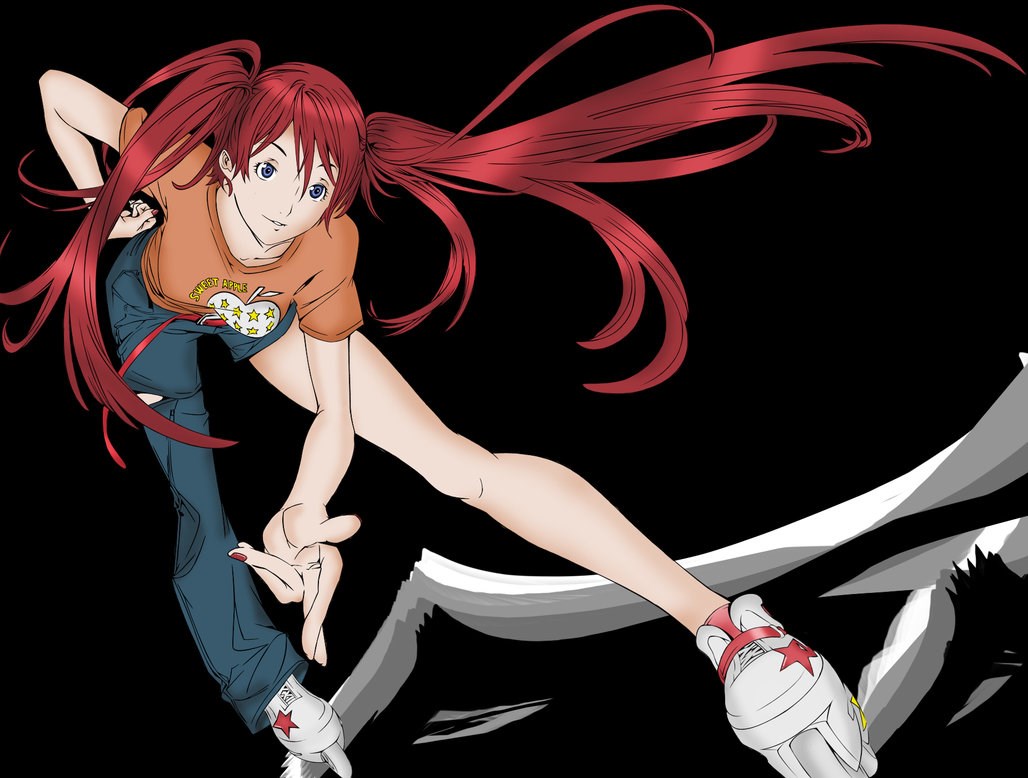 Description: A woman with red hair and a short skirt is dancing with her legs spread out and her legs spread out.