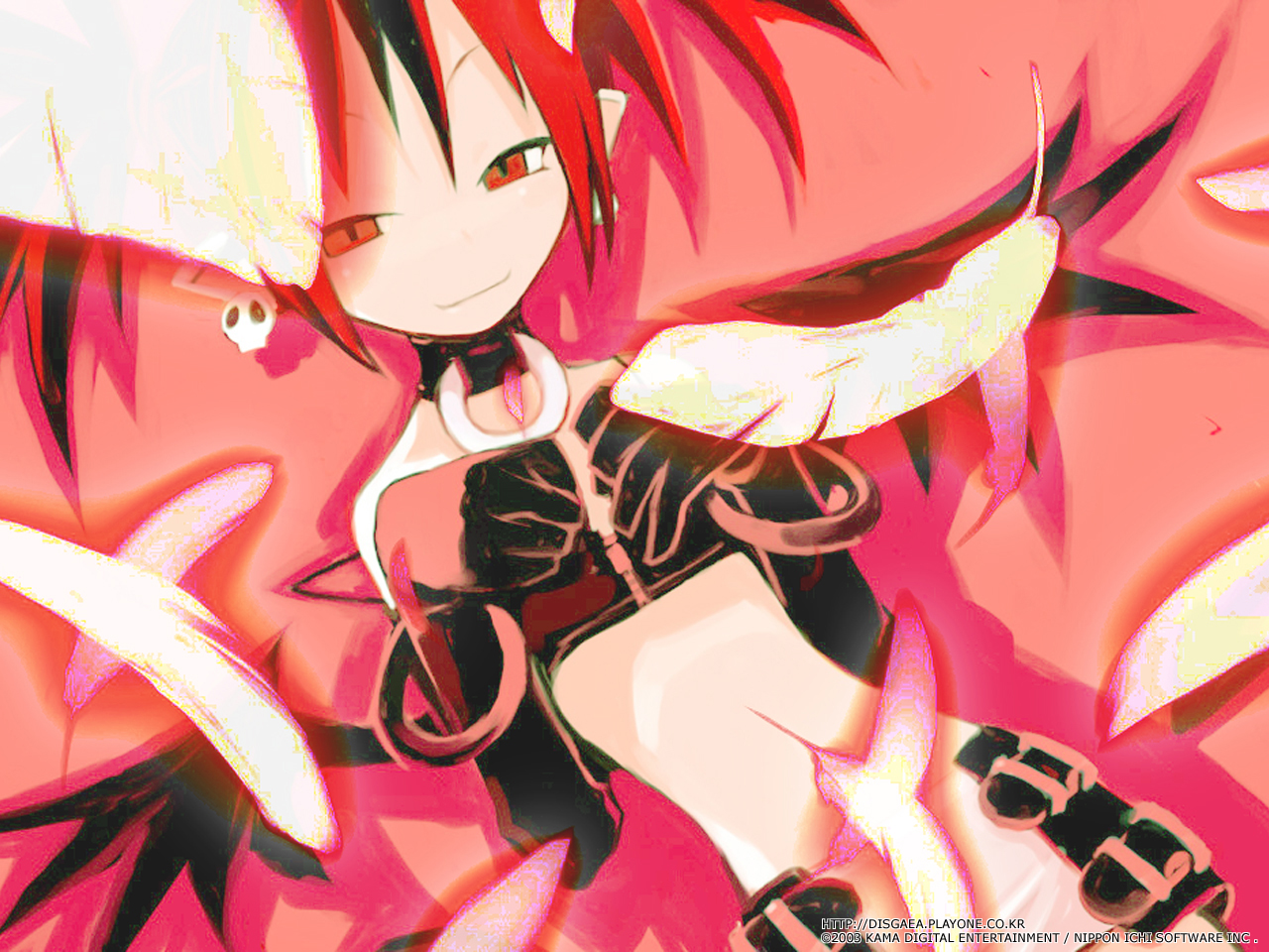Description: A girl with red hair and black boots is holding a pink umbrella and a pink background with white letters.