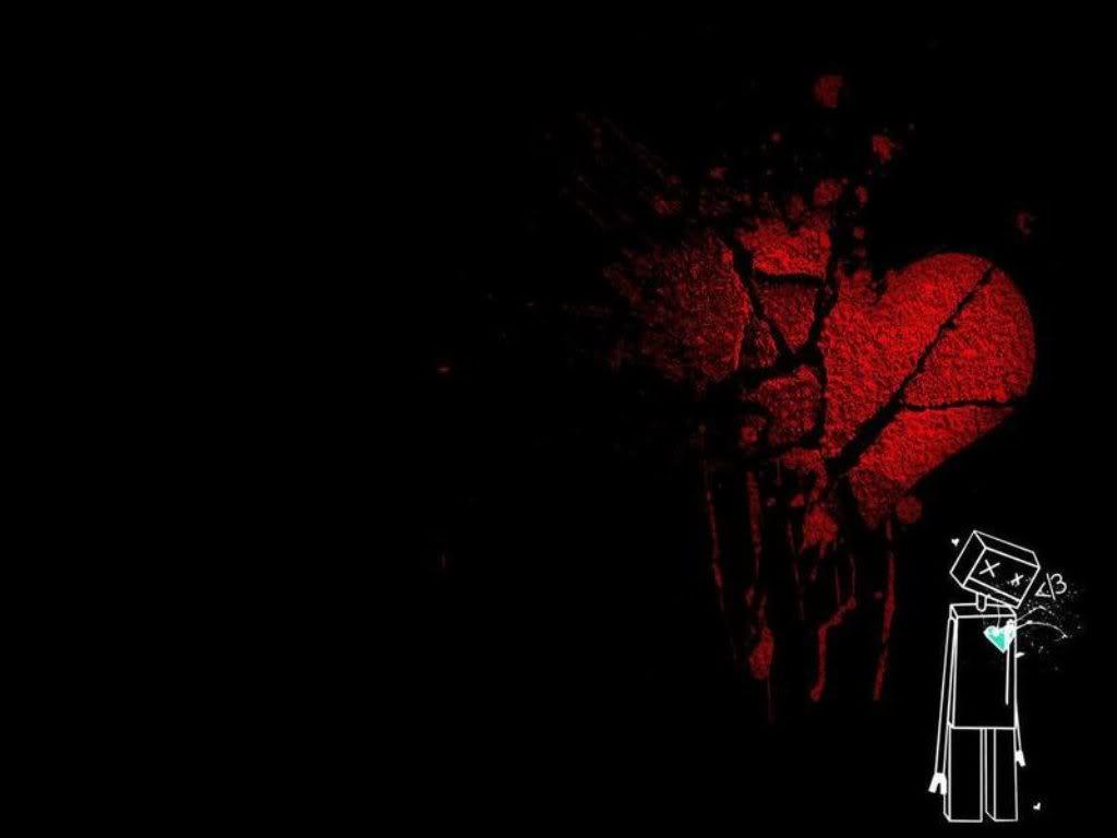 Description: A red heart is in the dark with a person holding a knife and a box in it's hand.