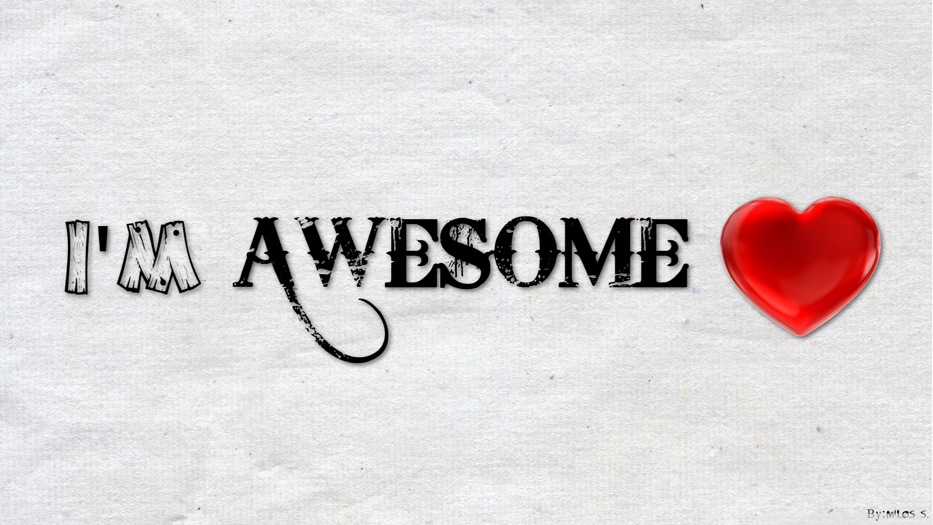 Description: A red heart sitting on top of a piece of paper with the words i'm awesome written on it.