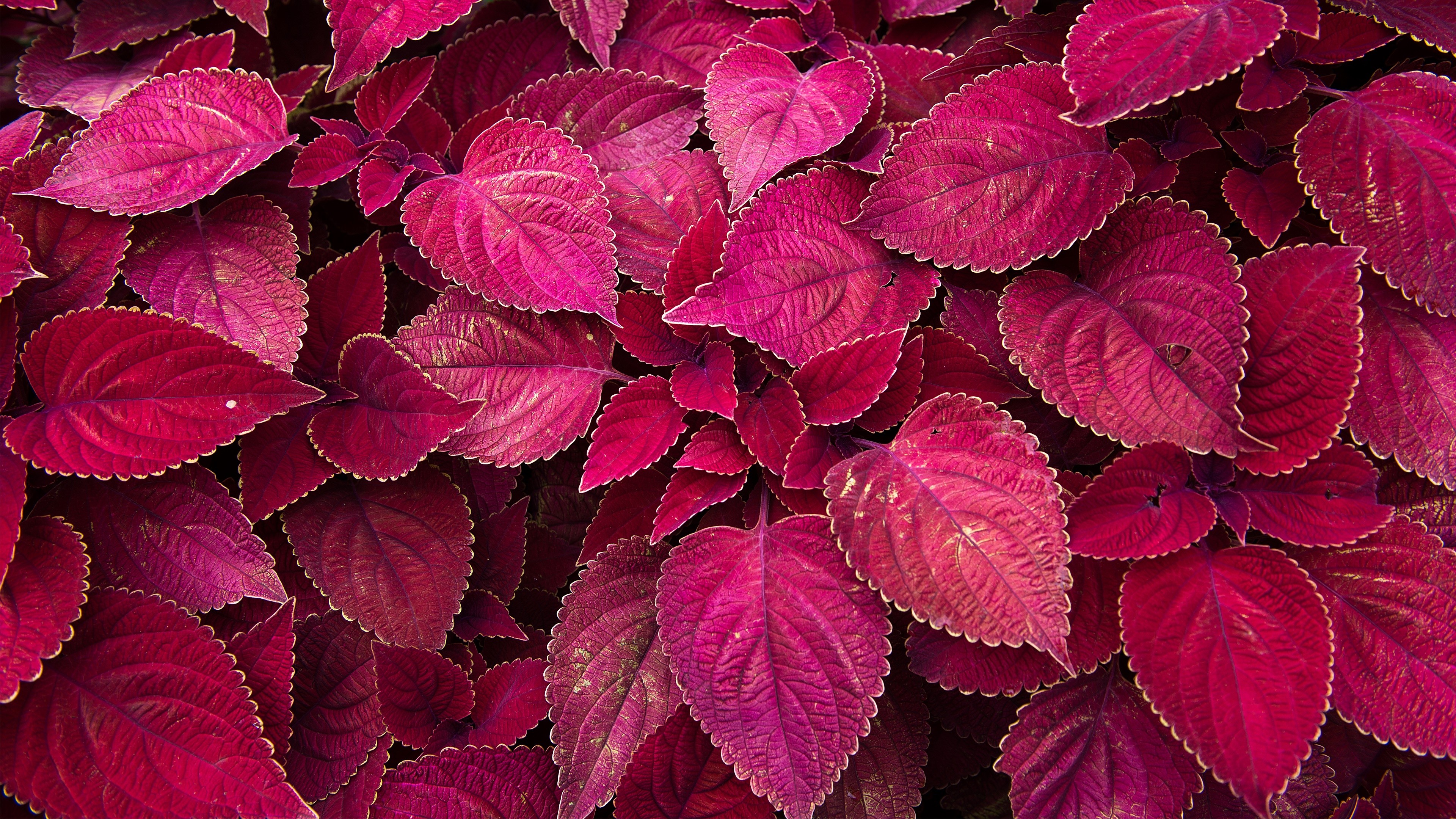 Description: A close up of a bunch of red leaves on a plant with water droplets on them and a black background.