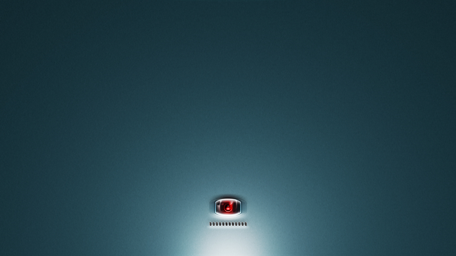 Description: A red light is shining in the dark room with a blue background and a white light at the end of the room.