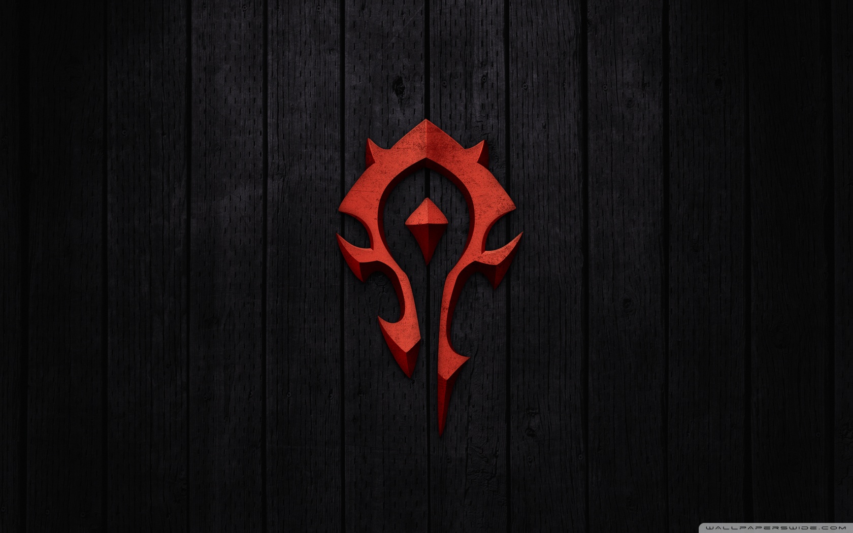 Description: A red logo on a wooden wall with a dark background and a red arrow on the side of it.