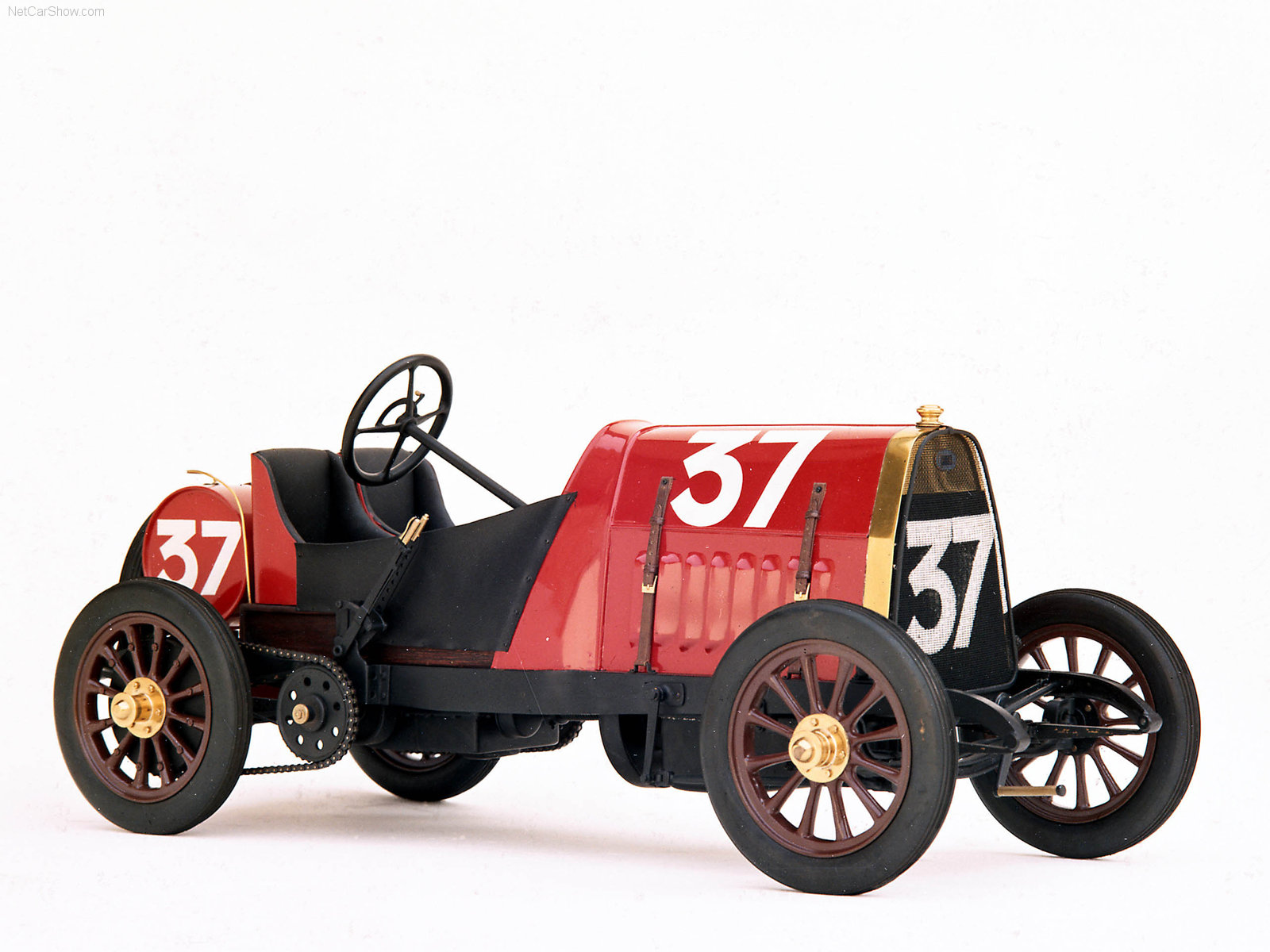 Description: A red model car with a number 37 on the side of it's front wheel drive.