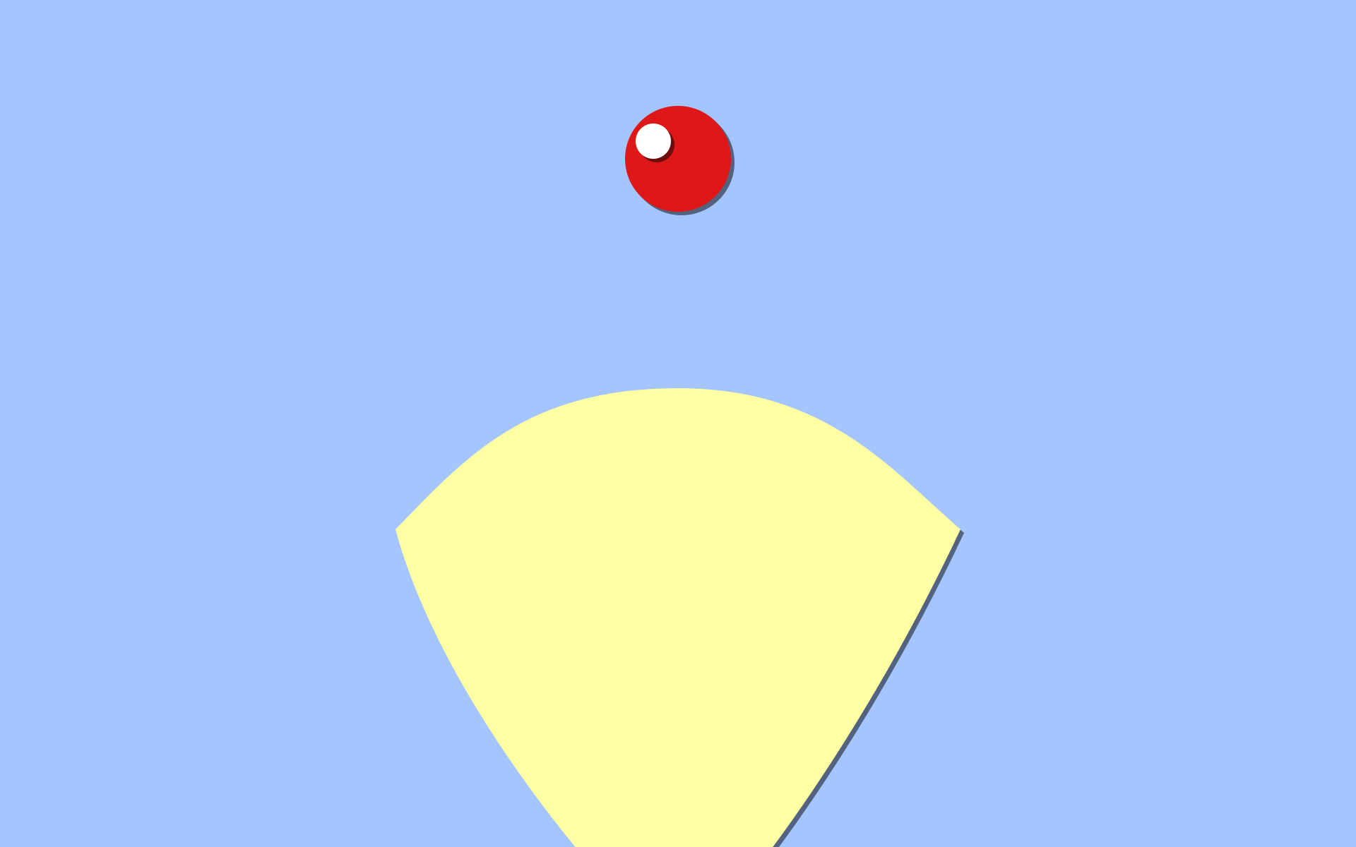 Description: A red object is flying over a yellow object in the sky.