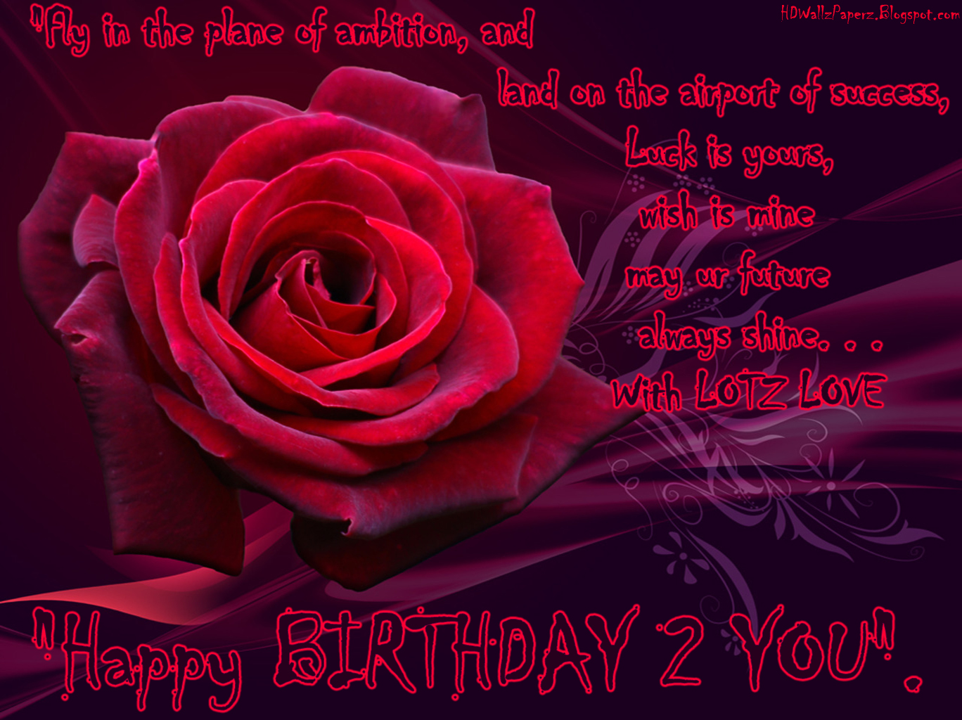 Description: A red rose with a message for a birthday card for someone special someone's special day of love.