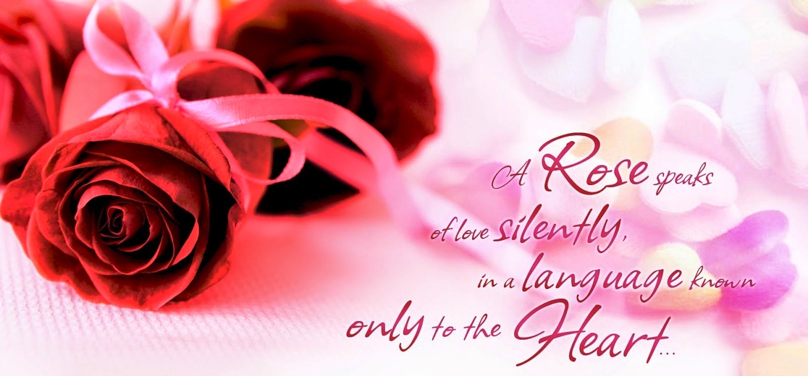 Description: A red rose sitting on top of a white table next to a pink ribbon and a pink rose with a message.