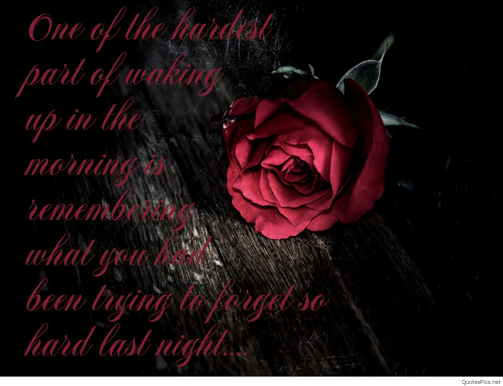 Description: A red rose sitting on top of a wooden table next to a quote from a poem by a person.