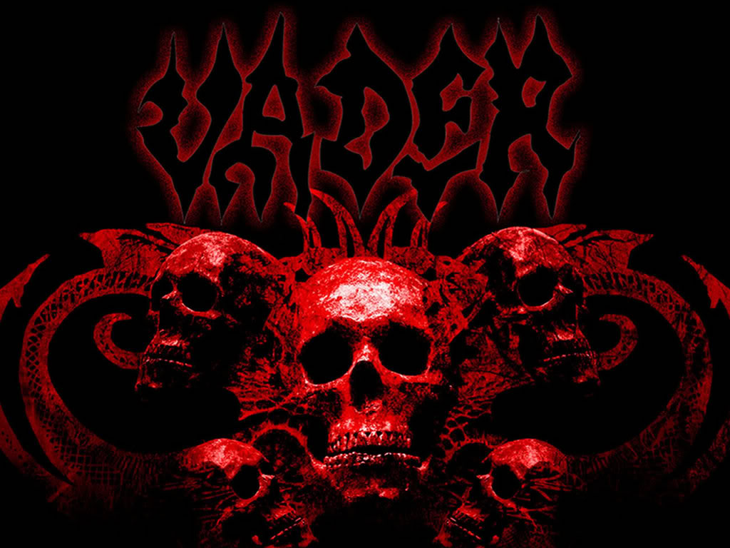 Description: A red skull with a black background and a red swirl around it's head and the words megadead on it.