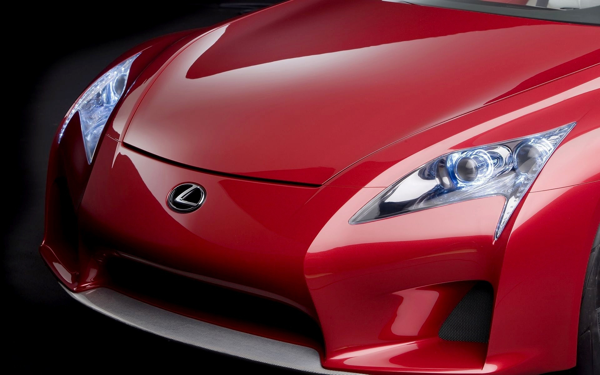 Description: A close up of a red sports car with a black background and a black background with a white stripe.