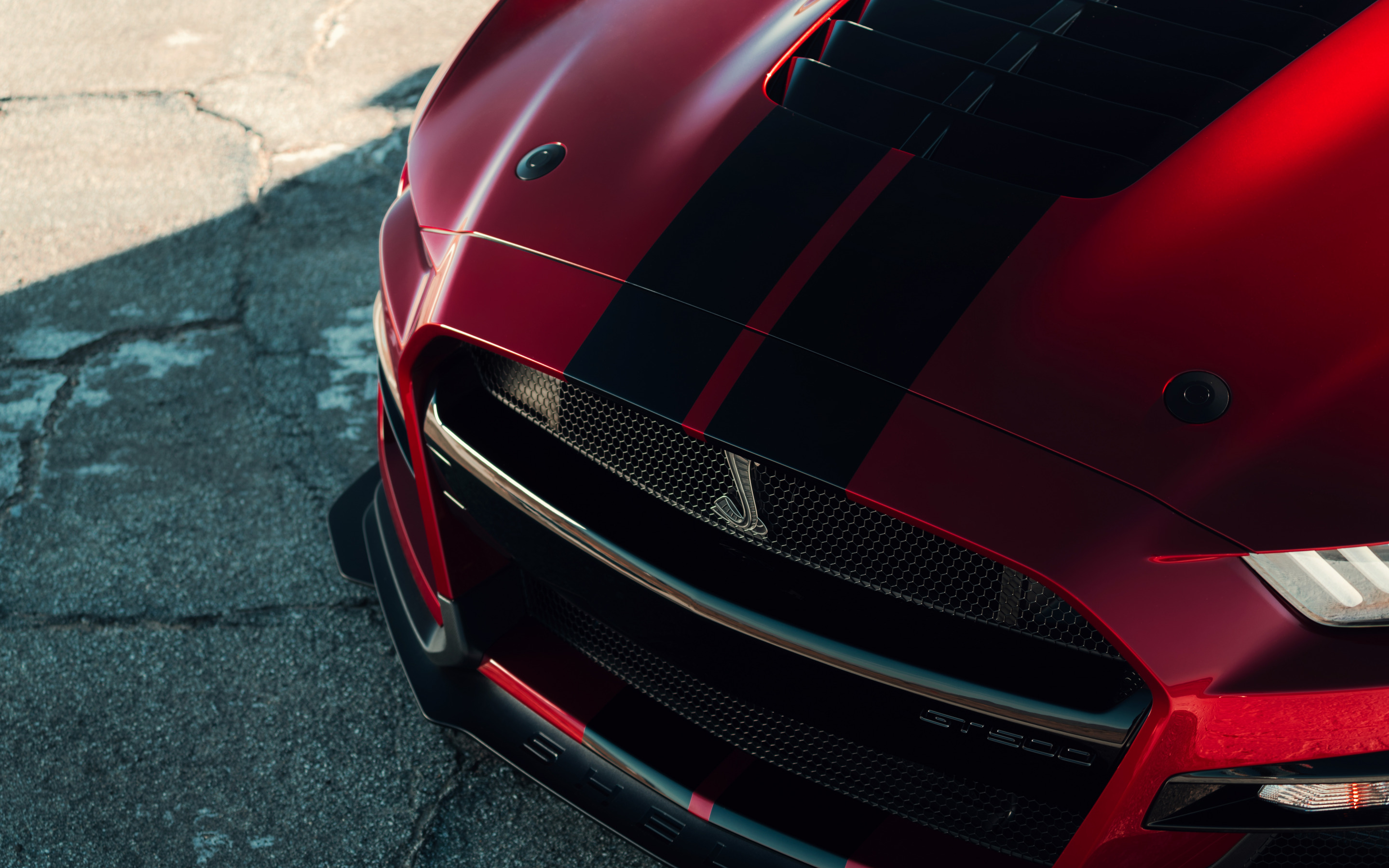 Description: A red sports car parked on the side of the road with its hood up and hood down.