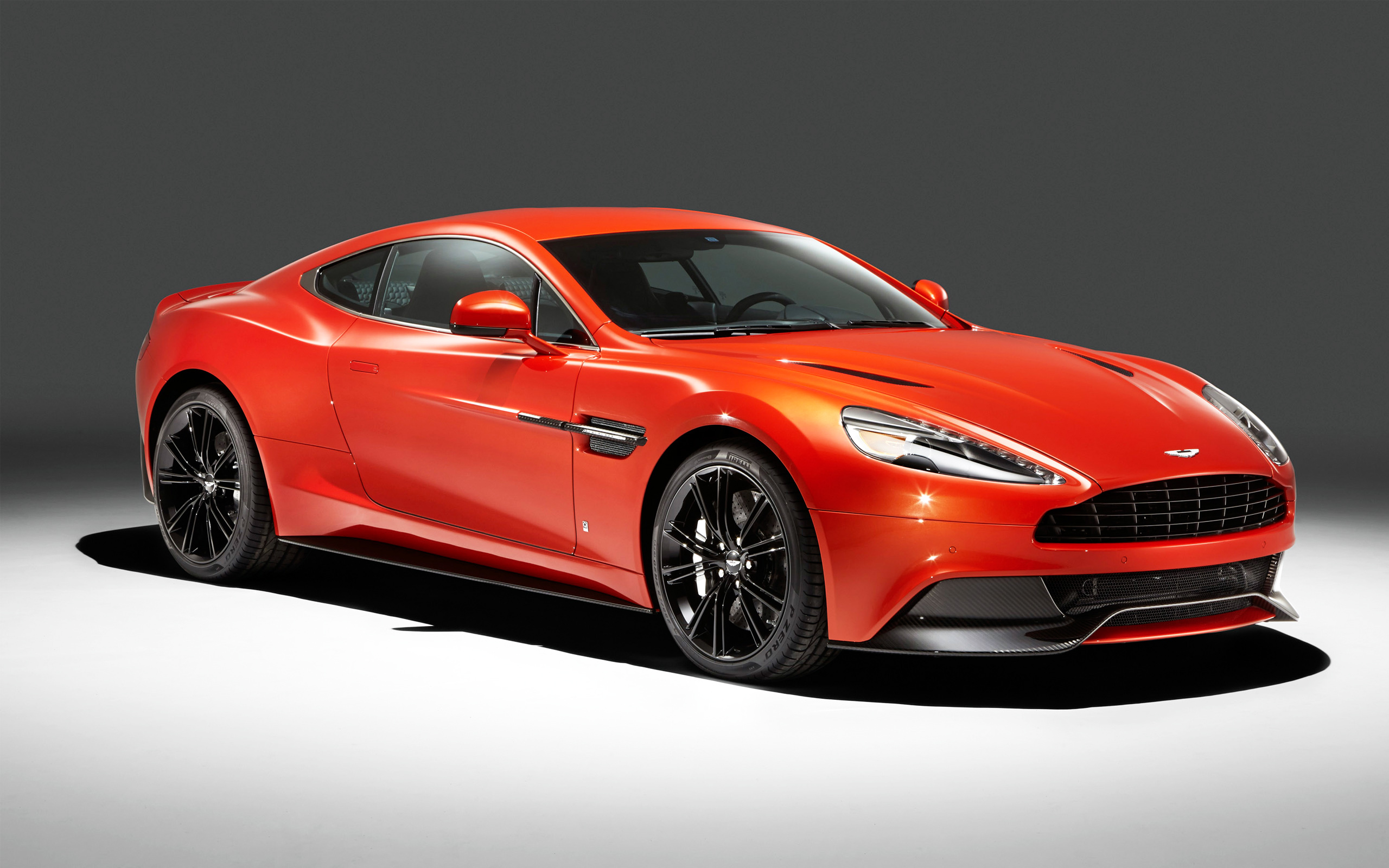 Description: A red sports car is shown in a studio photo with a gray background and a black background behind it.