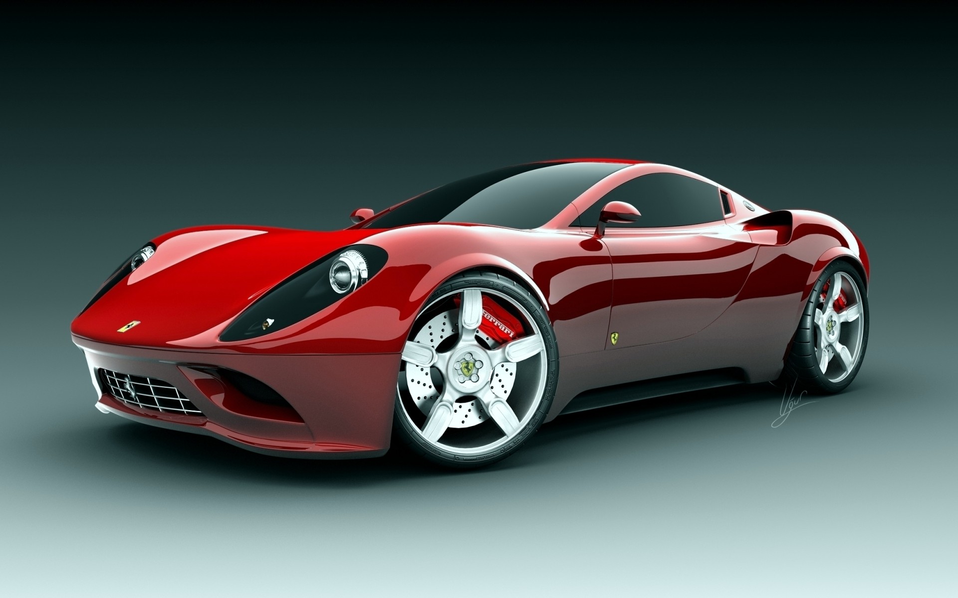 Description: A red sports car is shown in a studio photo with a black background and a gray background behind it.