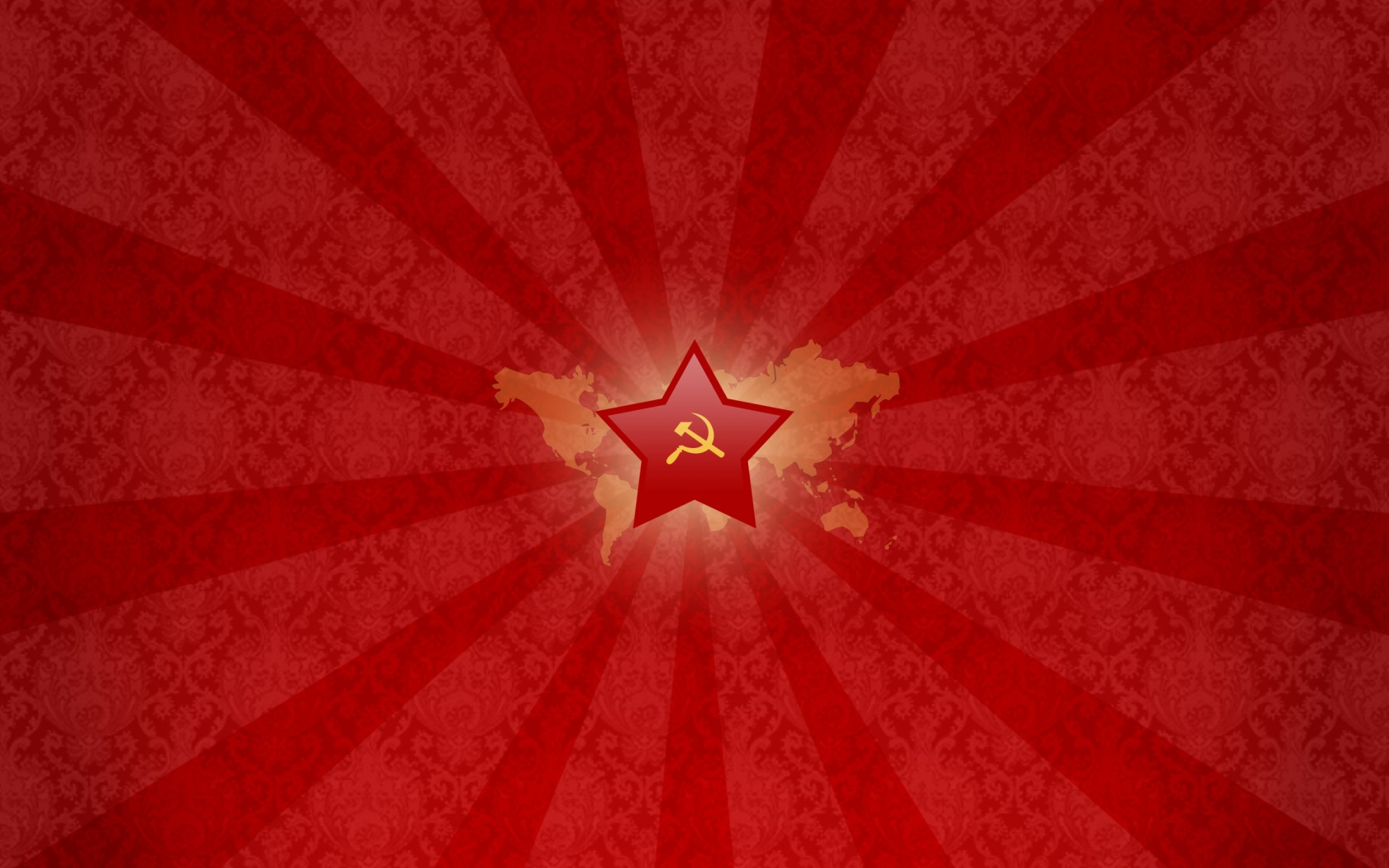 Description: A red star with a hammer and sick symbol on it's center surrounded by red rays of light.