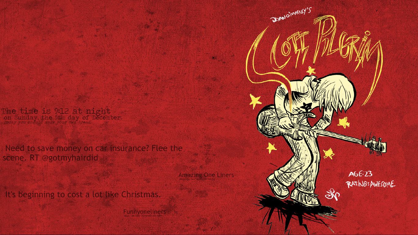 Description: A red wall with a cartoon character holding a baseball bat and a caption that reads.