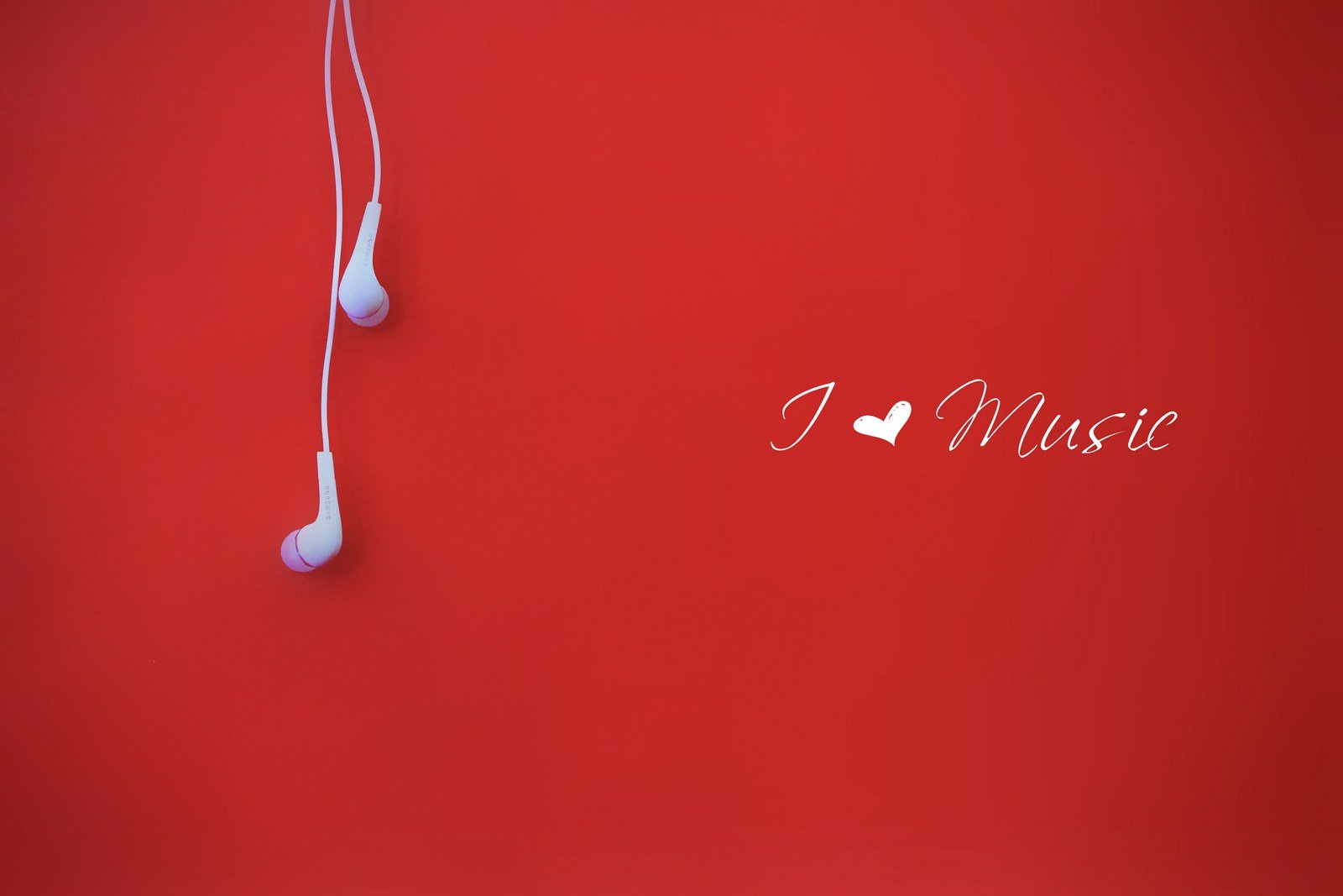 Description: A red wall with a pair of headphones hanging from it's side and a heart on the wall.