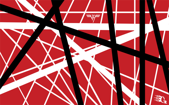 Description: A red and white abstract background with lines and squares in the center of the image.