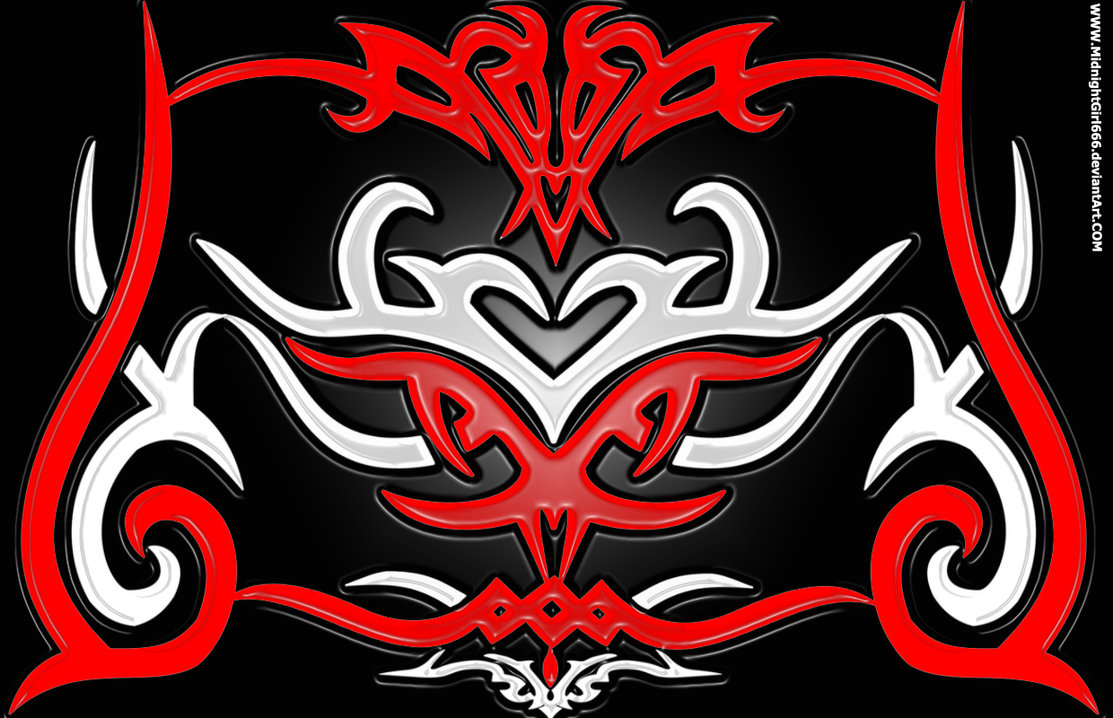 Description: A red and white design on a black background with a heart in the middle of it and a bird on the bottom.