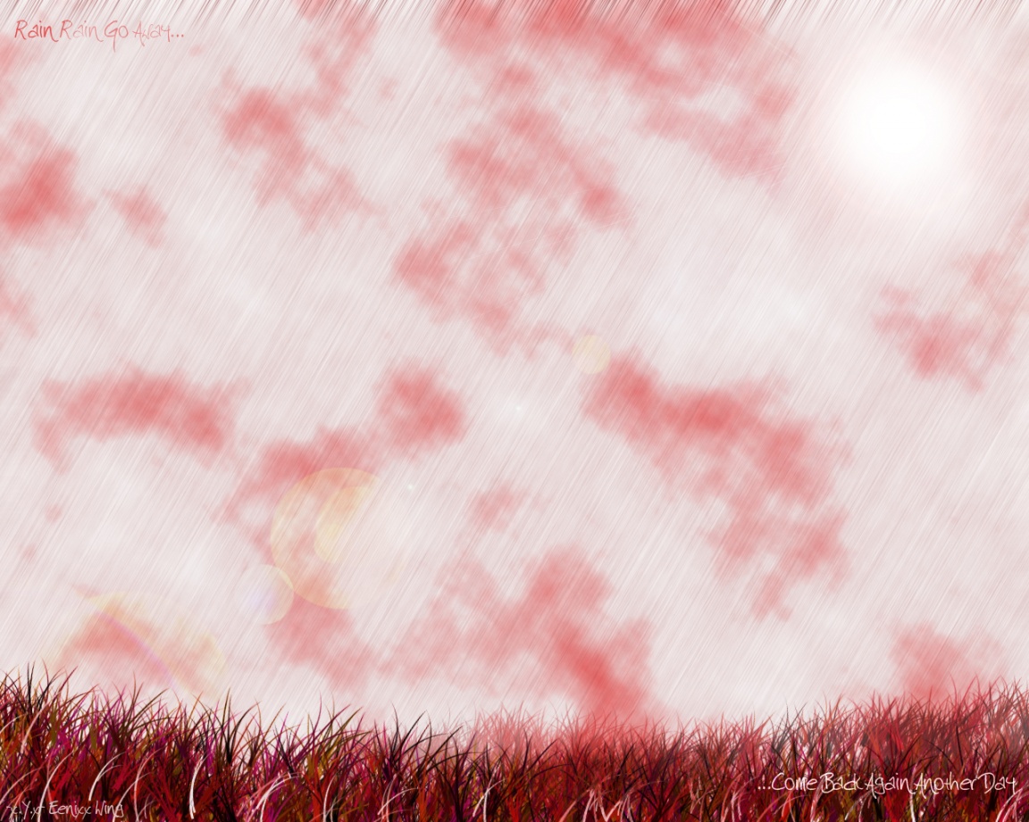 Description: A red and white photo of a field with grass and clouds in the background and a red and white background.