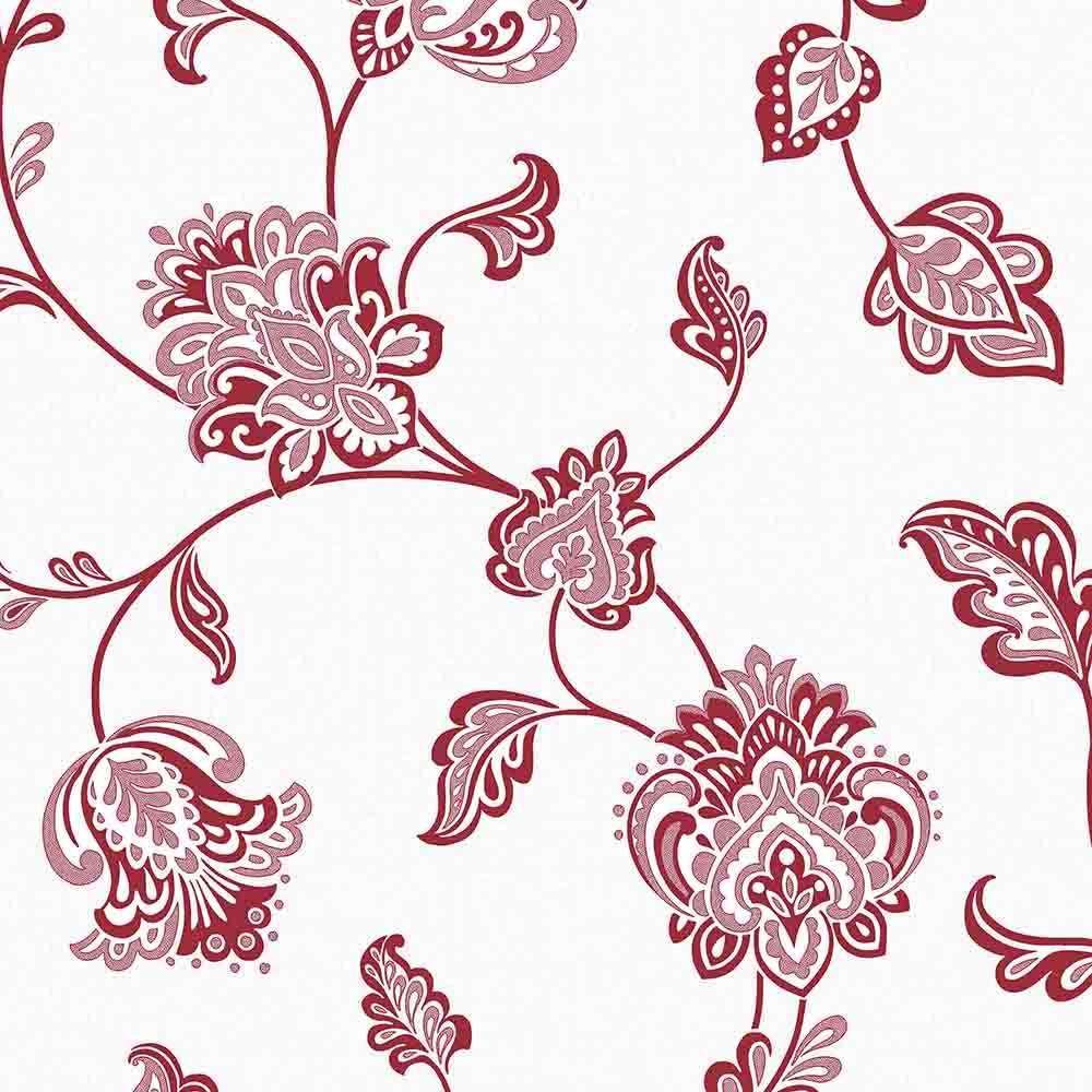 Description: A red and white floral pattern on a white background.