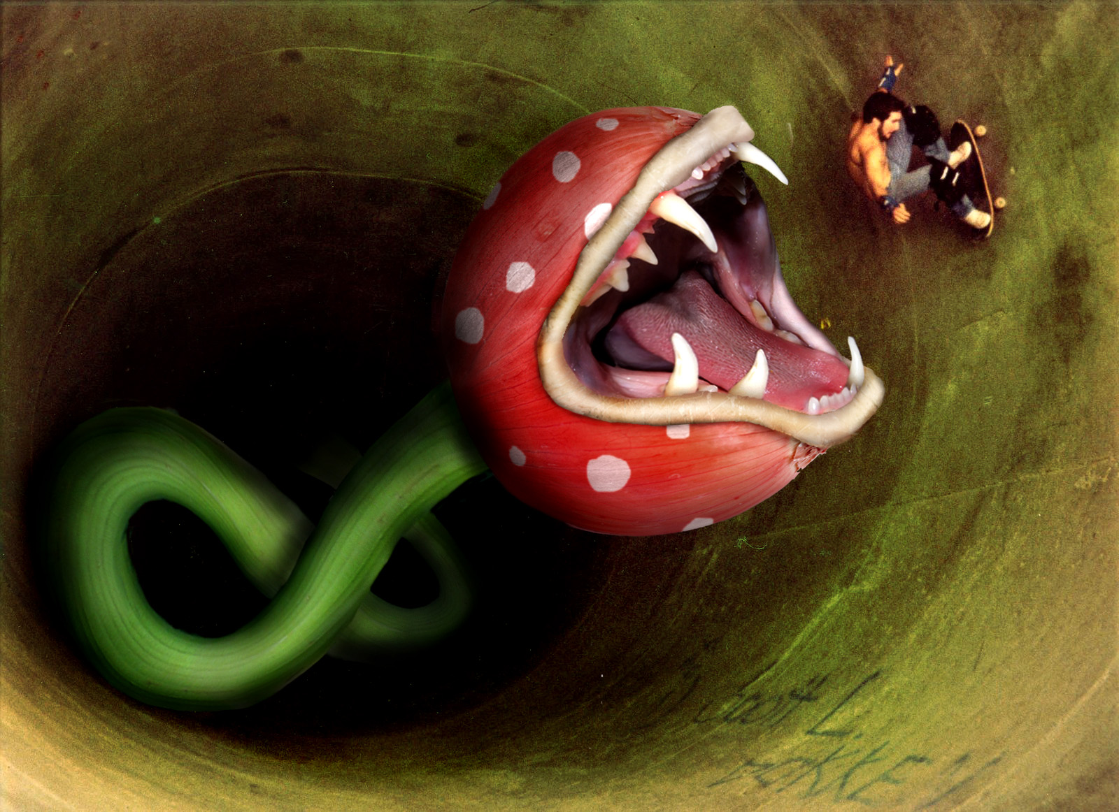 Description: A red and white flower with a green stem and a white doted design on it's head.