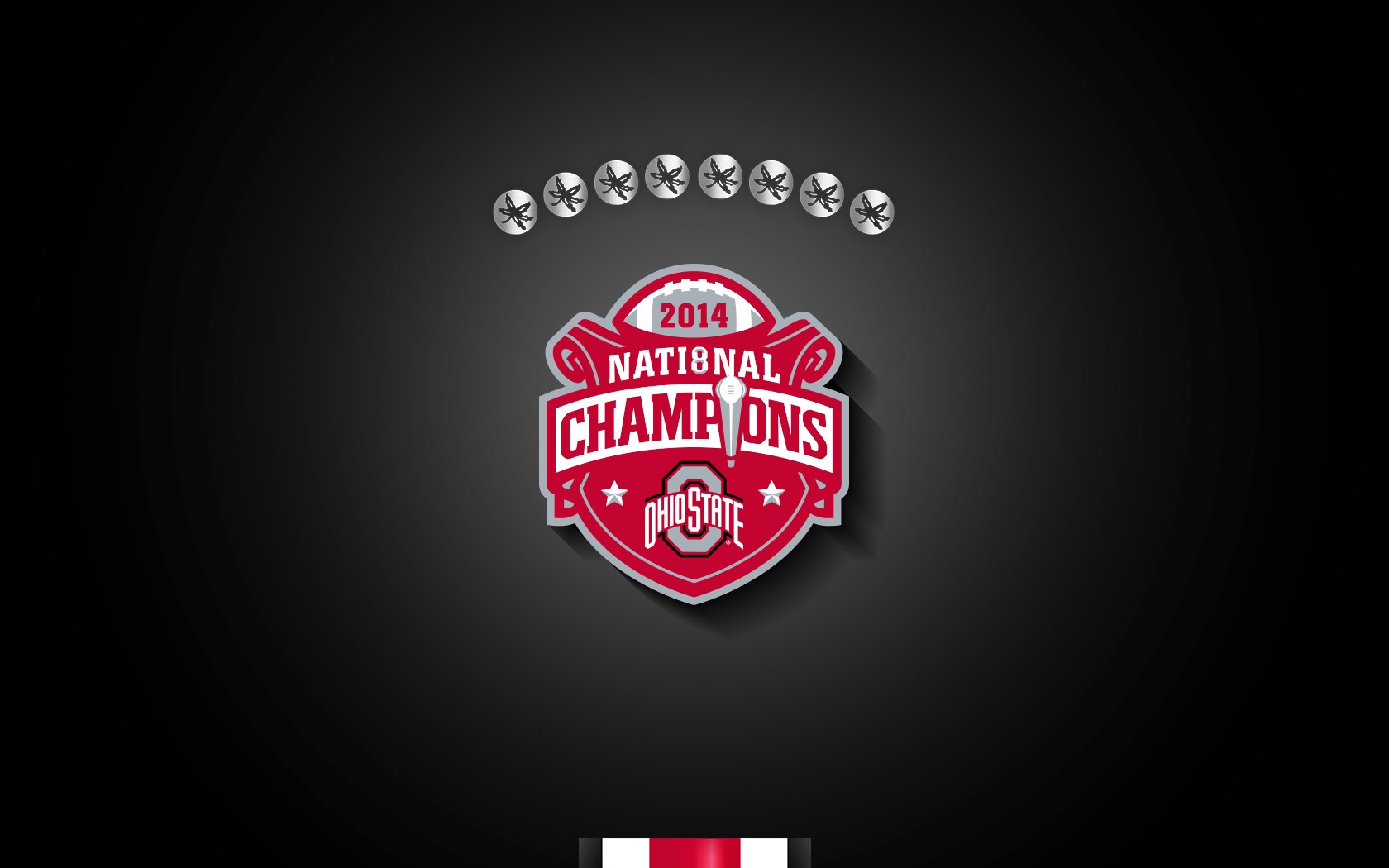 Description: A red and white logo with the words national champs on it and a red and white stripe on the bottom.