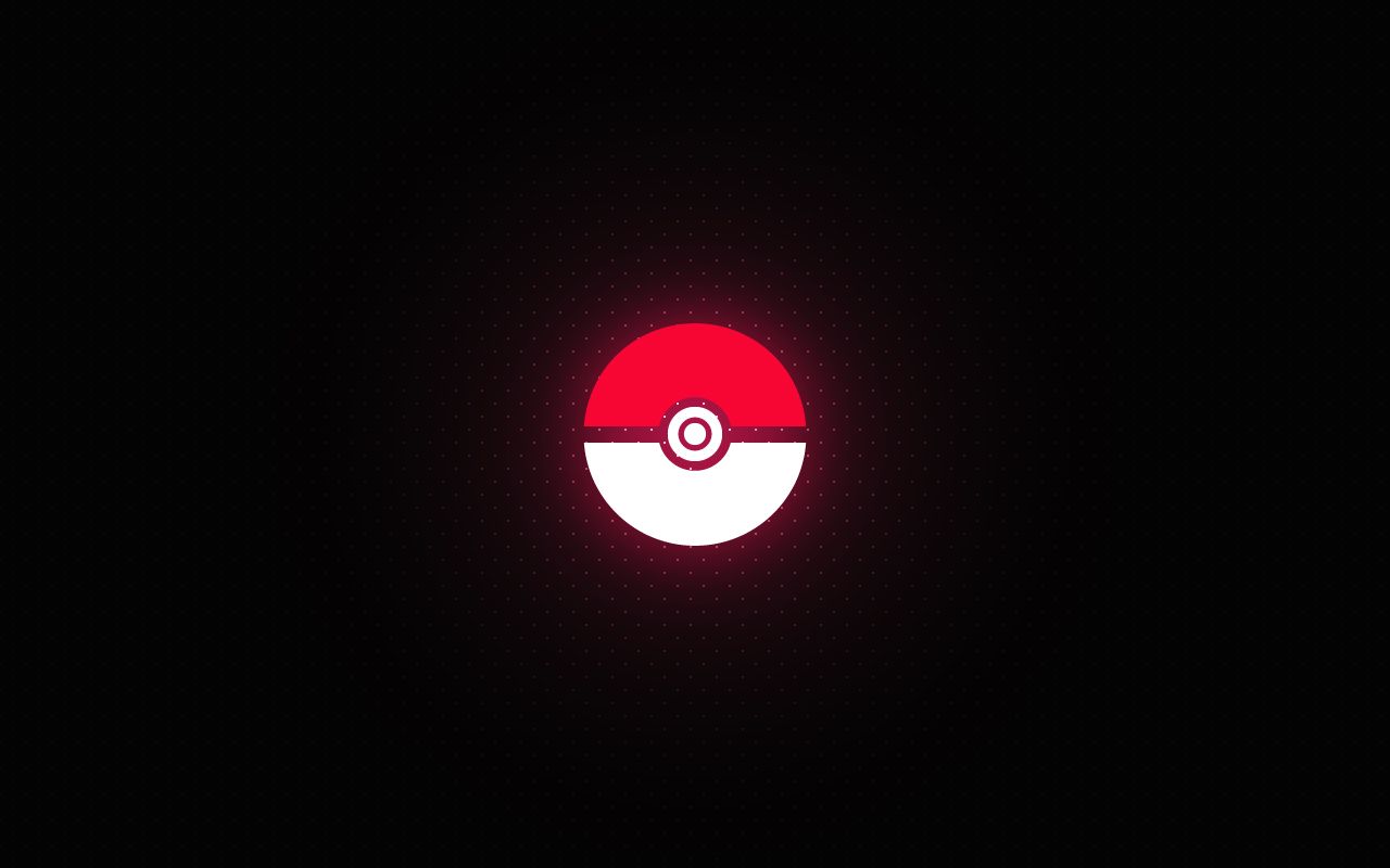 Description: A red and white pokeball in the dark with a black background and a red circle in the center.