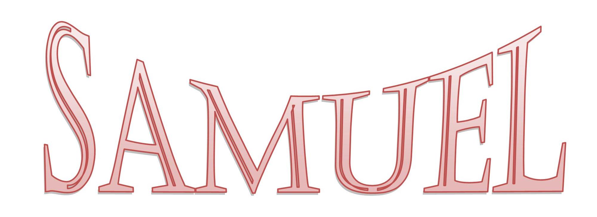 Description: A red and white photo of the word samuel written in cursive font and a red and white background.