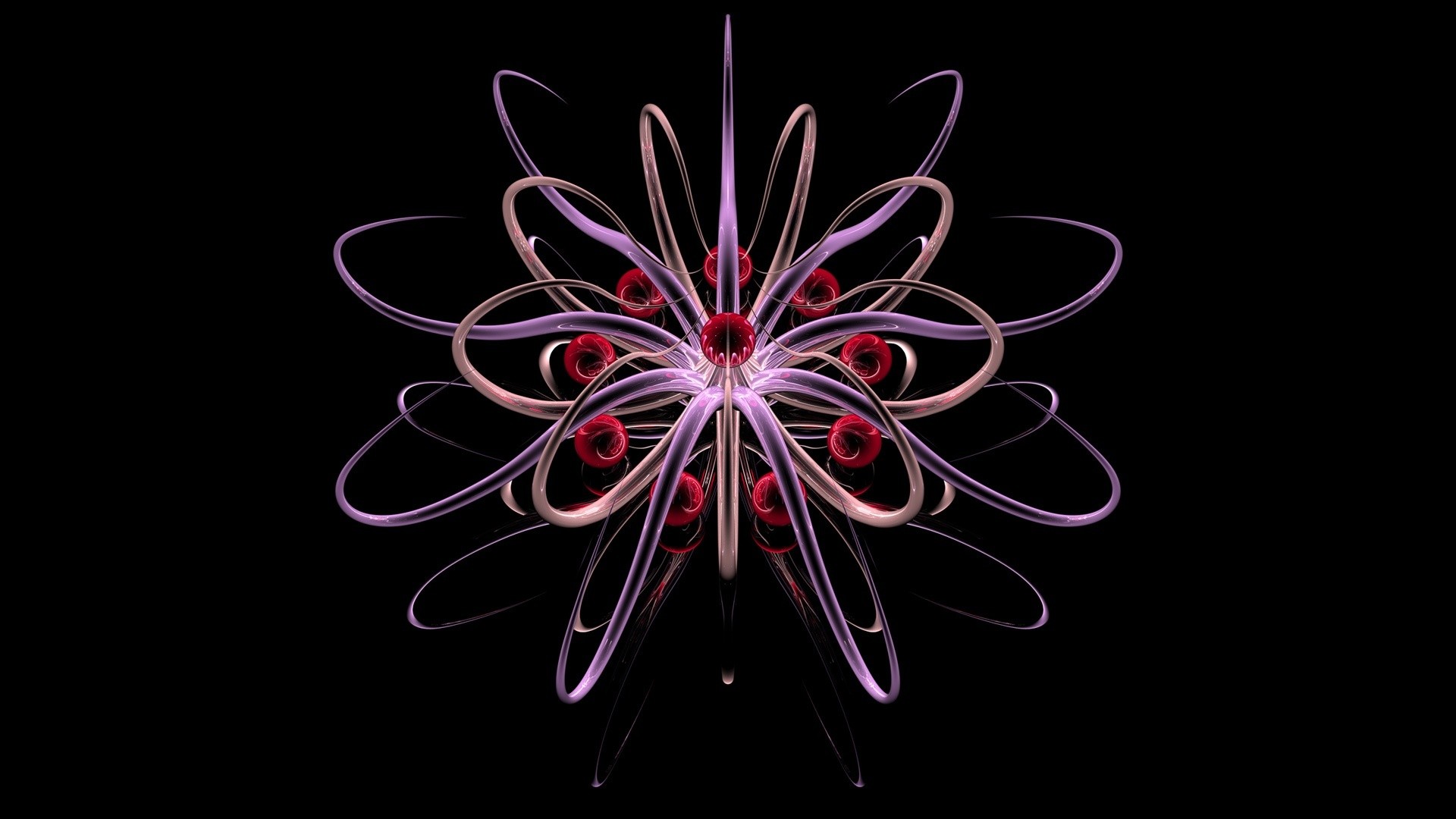 Description: A computer generated image of a flower with red and white petals on a black background with a red center.