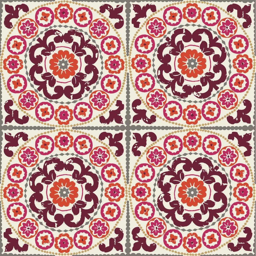 Description: A red and white tile with a flower design on it's side.