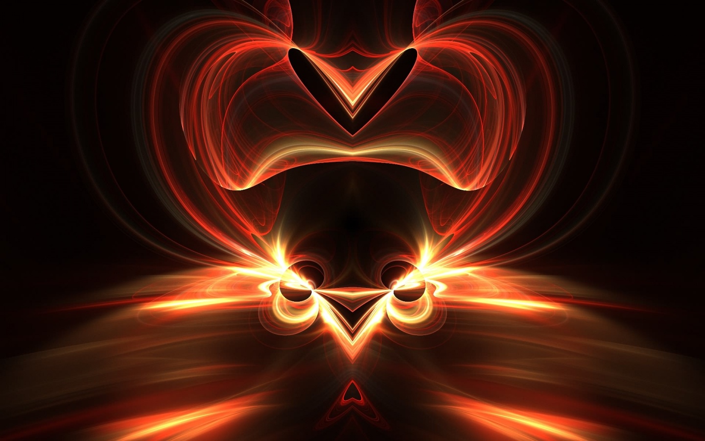 Description: A computer generated image of a red and yellow fracta design with a black background and a white triangle.