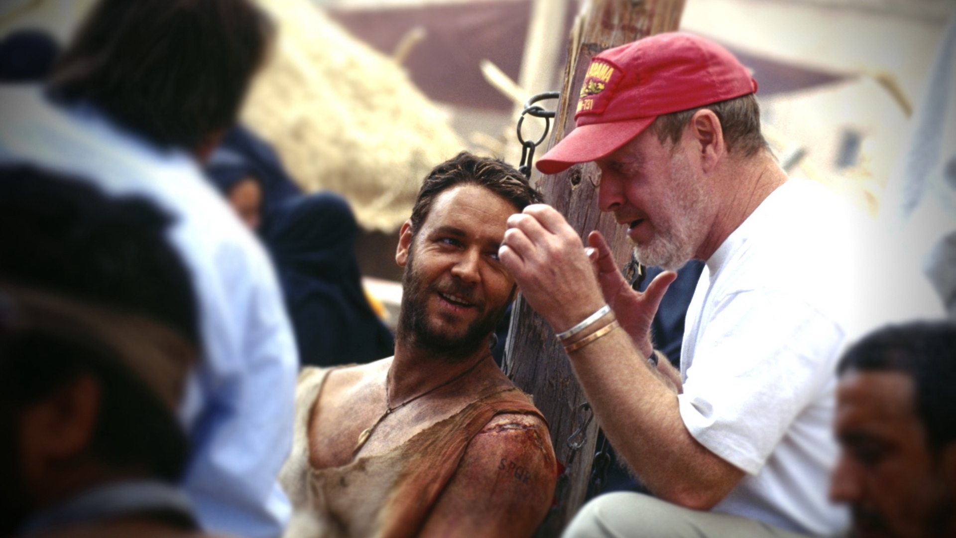 Description: A man getting his hair cut by a man with a red hat on and a man with a beard.