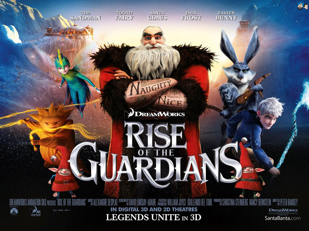 Description: Rise of the guardianss movie poster with characters from the movie.