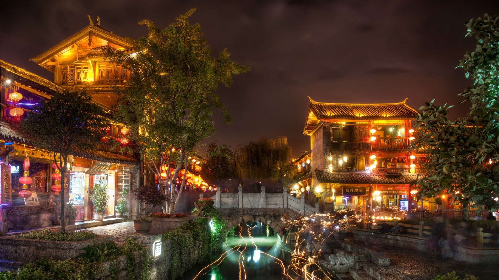 Description: A river running through a city at night with lights on it and buildings in the background with lights on them.