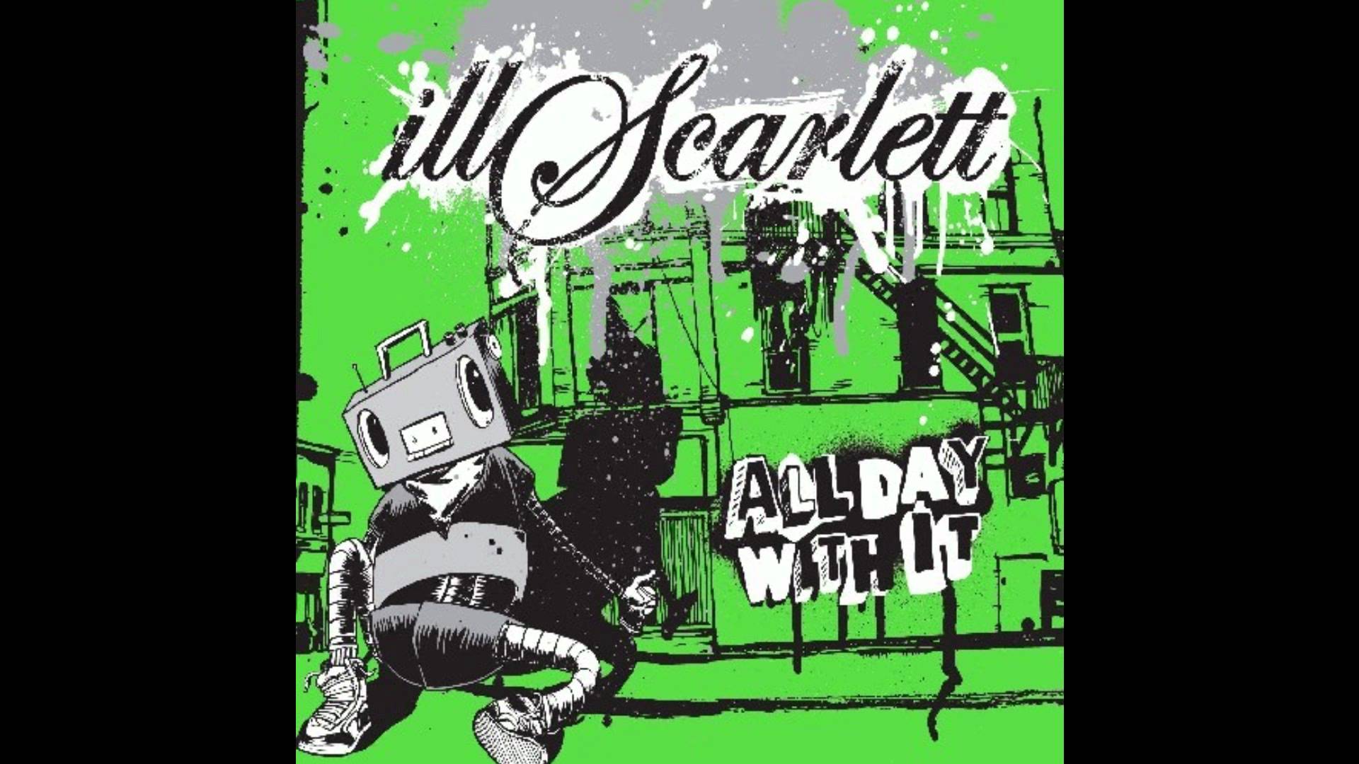 Description: A poster with a robot sitting on a bench in front of a fence and a green background with words all day we live.