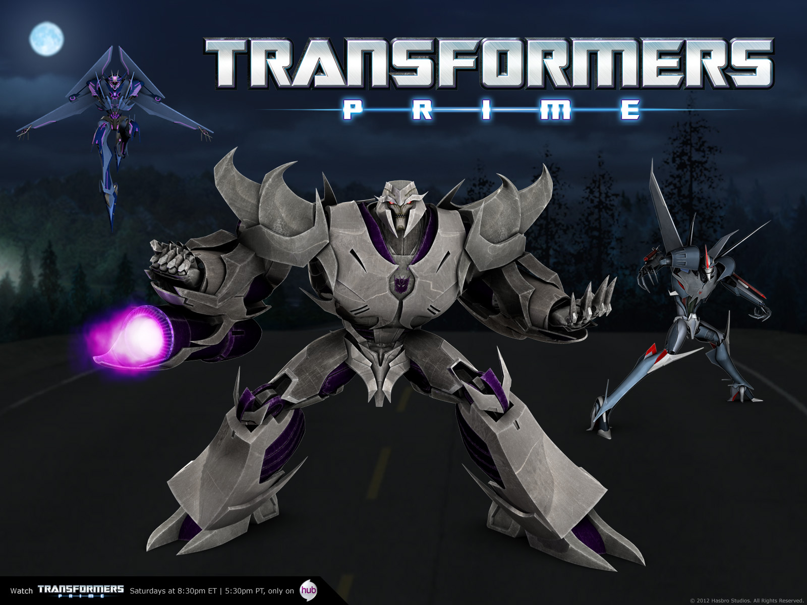 Description: A game scene with a robot and a demon in the background and a text that reads.