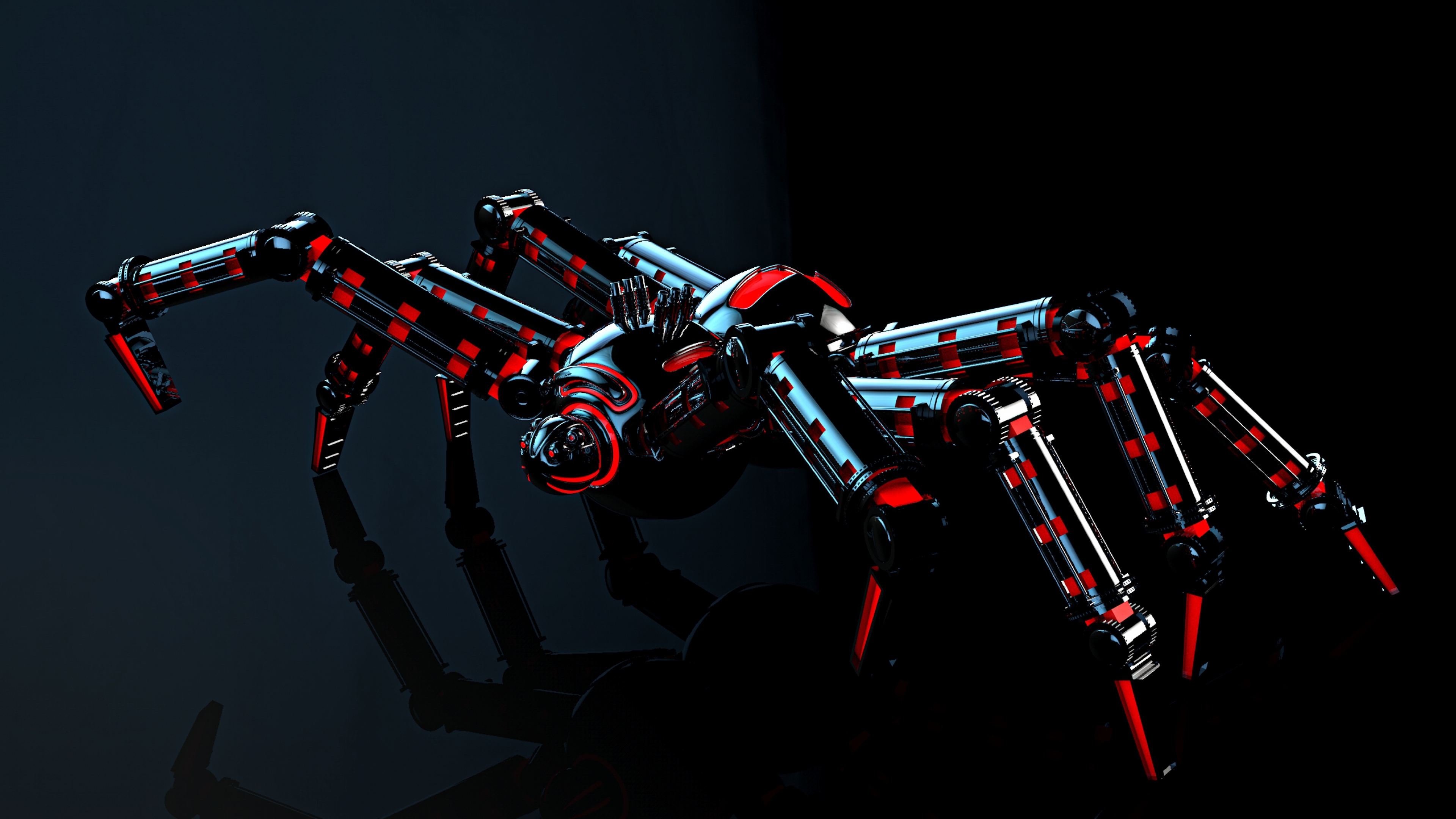 Description: A robot like creature with red and black lights on it's body and legs.