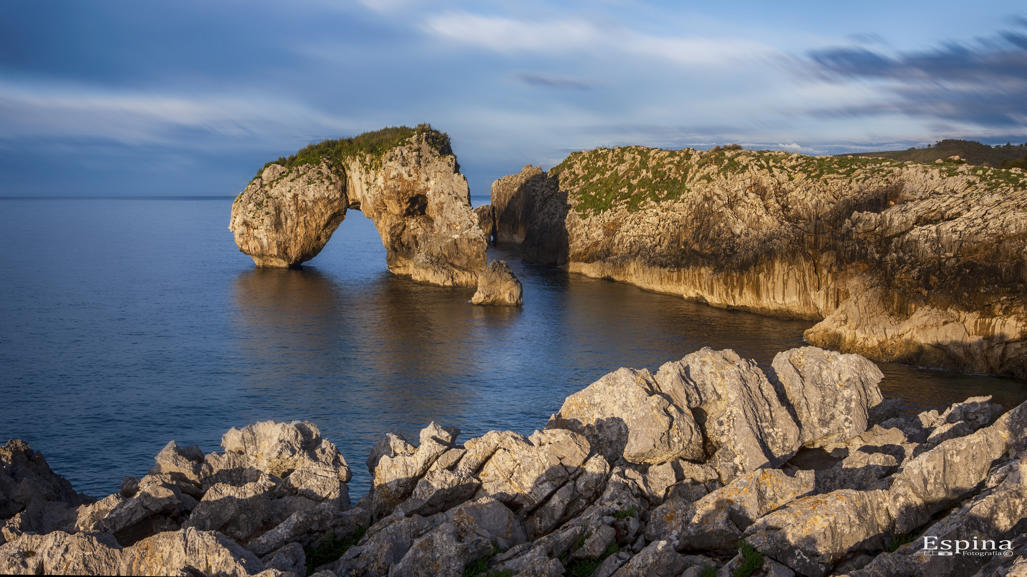 Description: A rock formation in the middle of a body of water with a rock formation in the middle of the water.