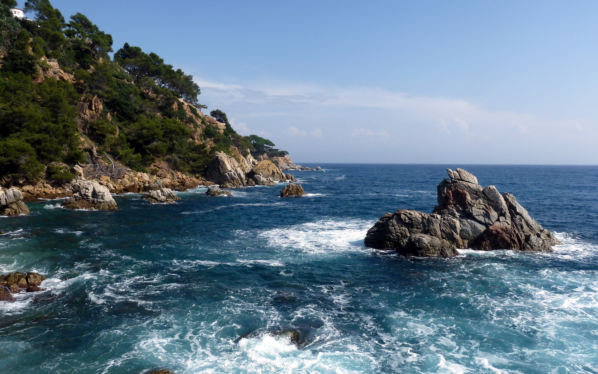 Description: A rocky cliff with a body of water below it and a cliff with a house on top of it.