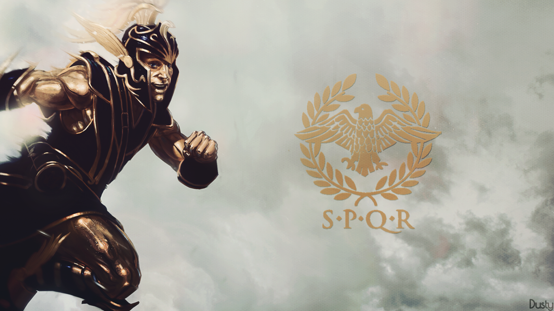 Description: A statue of a roman soldier with a golden eagle on his head and a spqr logo on the side.