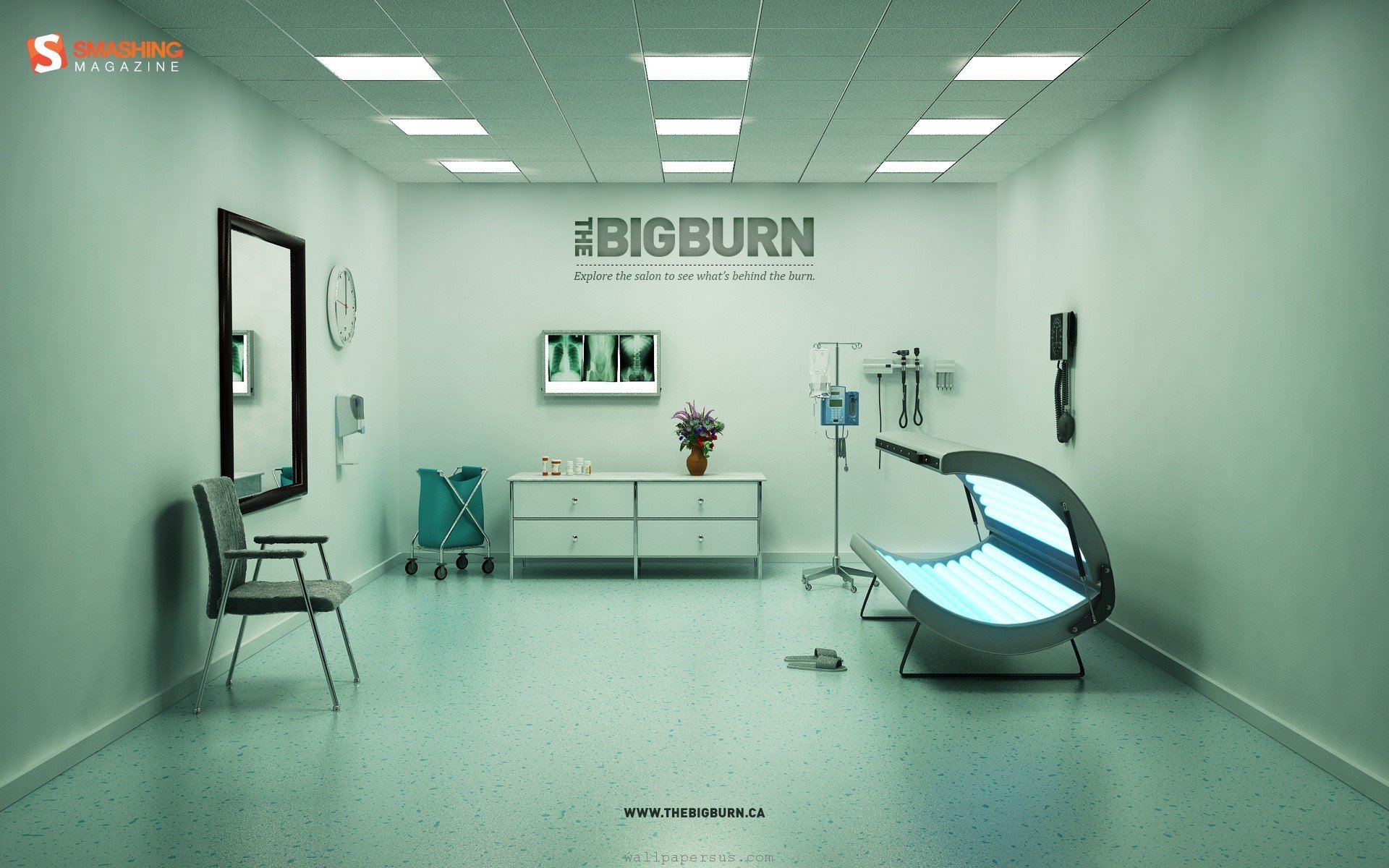 Description: A room with a chair and a mirror in it and a light on the wall above it that says the edgeburn.