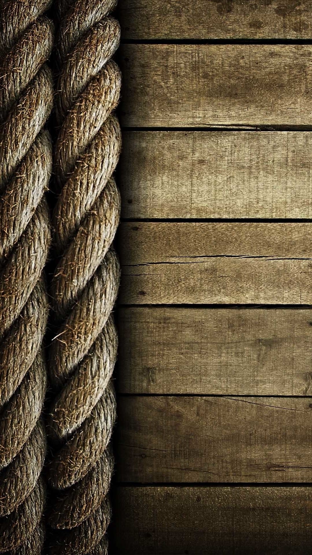Description: A rope is on a wooden surface with a wooden background and a rope with a knot on it is on a wooden surface.